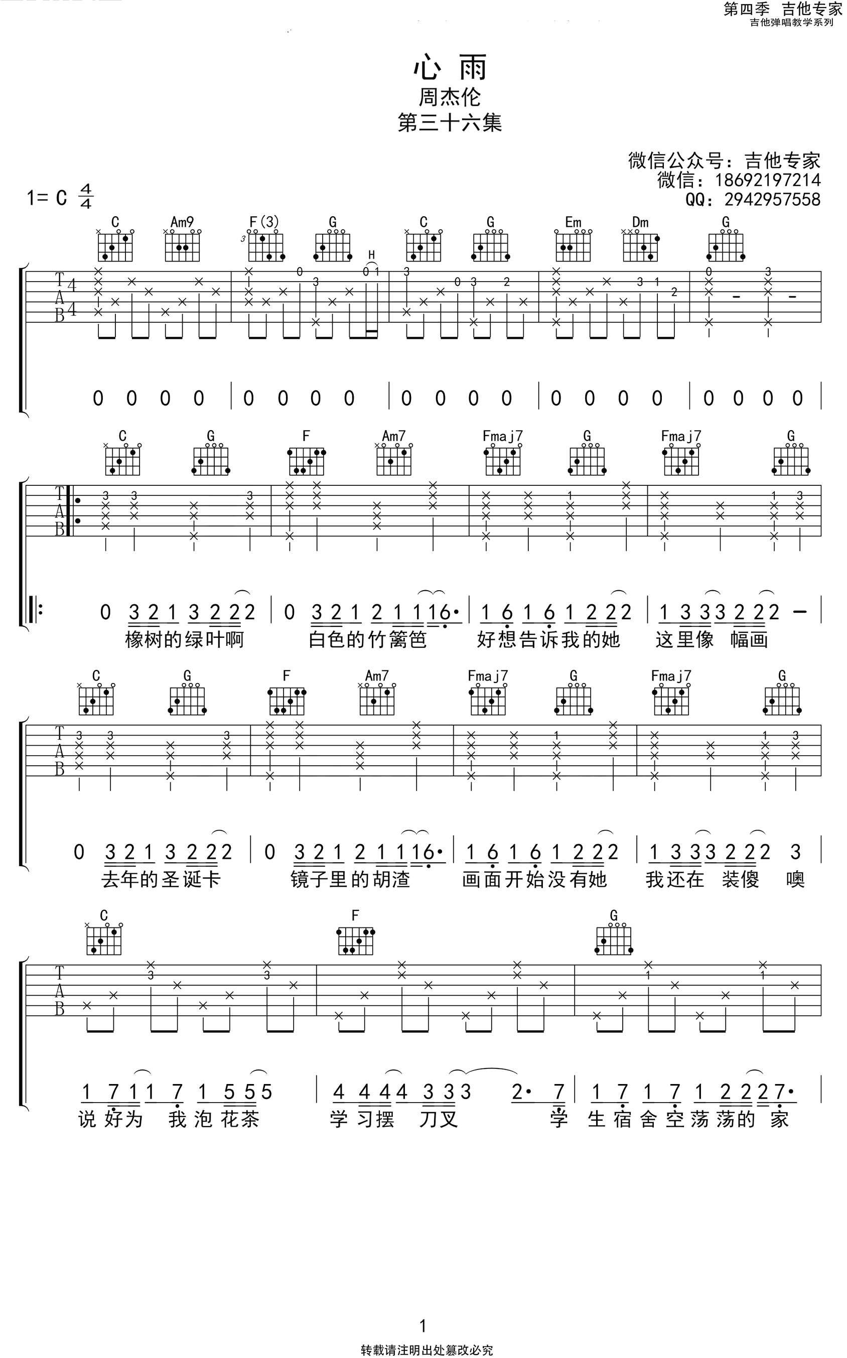 心雨吉他谱 - 周杰伦 - C调吉他弹唱谱