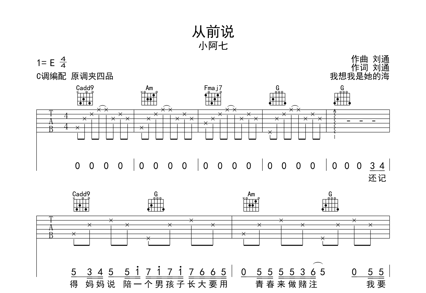 从前说吉他谱 - 小阿七 - C调吉他弹唱谱
