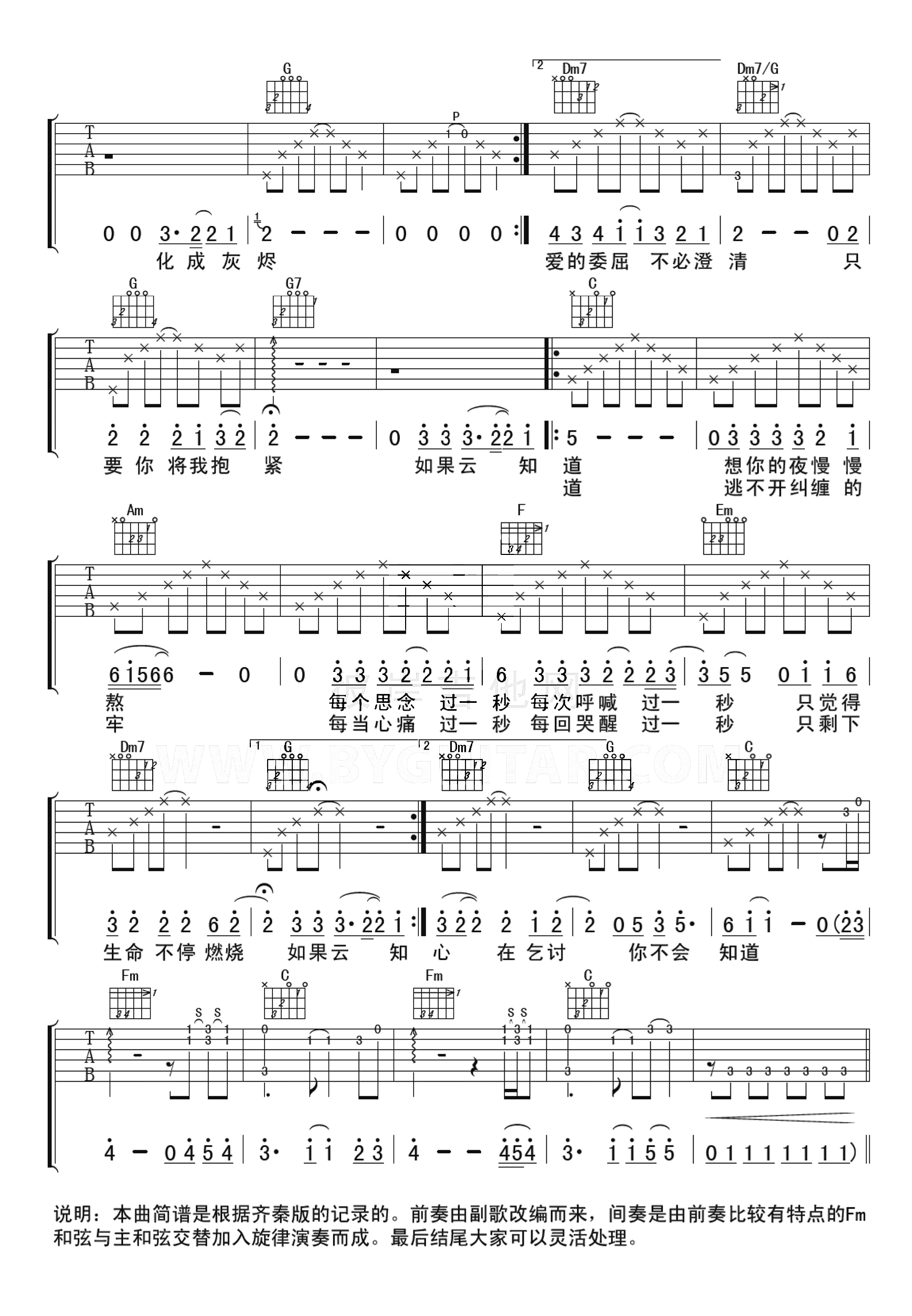 当前位置:琴谱网>吉他弹唱>如果云知道