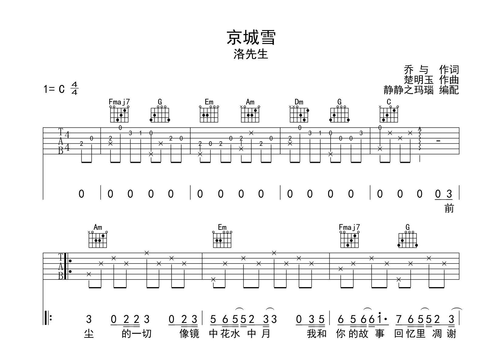 京城雪吉他谱 - 洛先生 - C调吉他弹唱谱 - 原版