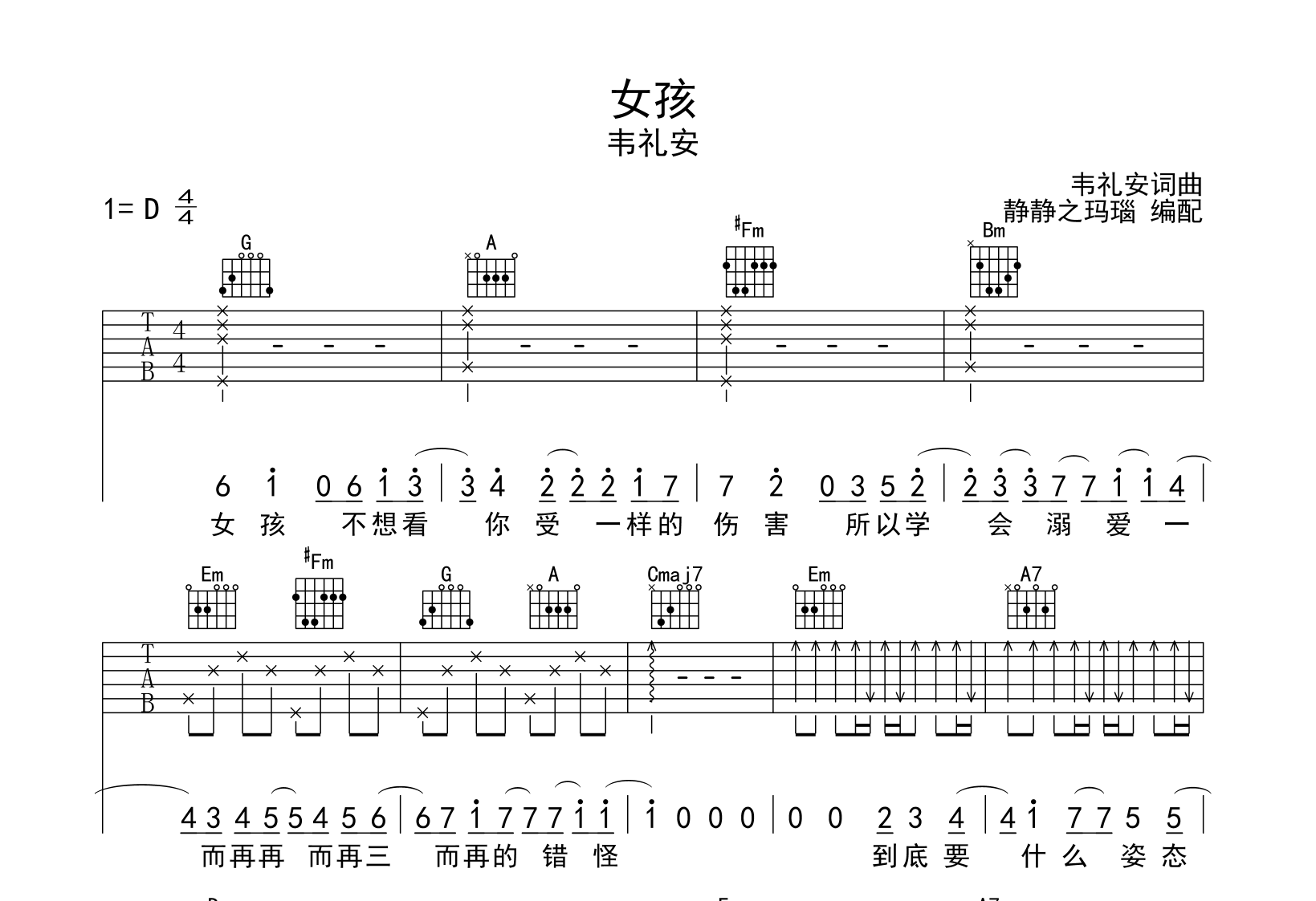 女孩吉他谱 - 韦礼安 - D调吉他弹唱谱
