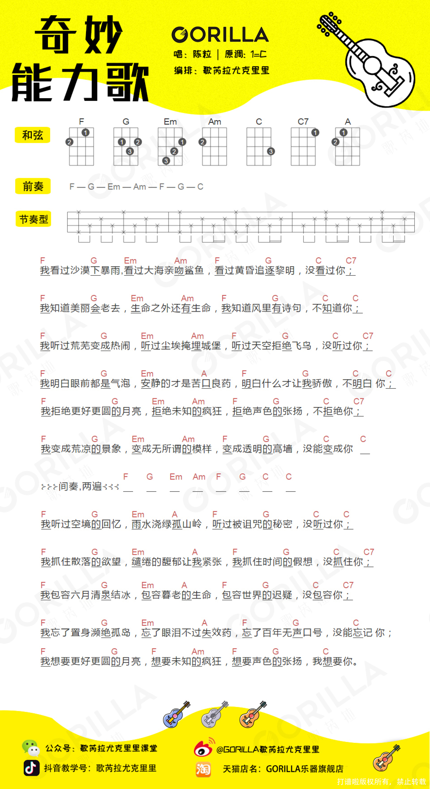 当前位置:琴谱网>尤克里里>奇妙能力歌