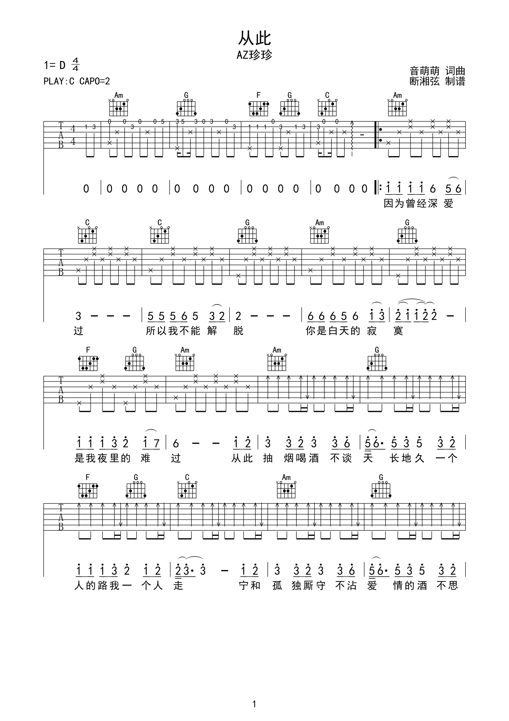 从此吉他谱 - AZ珍珍 - C调吉他弹唱谱
