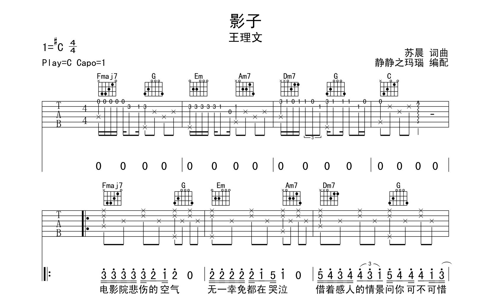 影子吉他谱 - 王理文 - C调吉他弹唱谱 - 原版