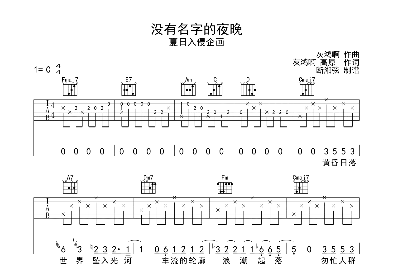 没有名字的夜晚吉他谱 - 夏日入侵企画 - C调吉他弹唱谱 - 原版