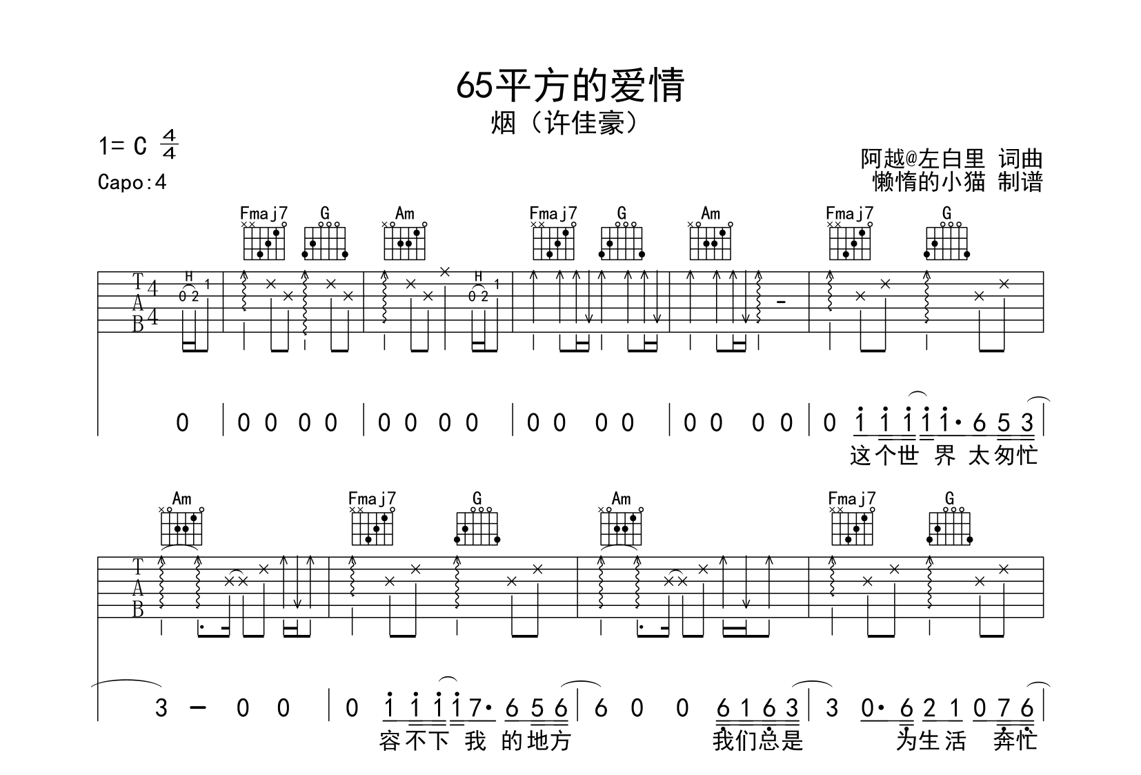 65平方的爱情吉他谱 - 烟(许佳豪) - C调吉他弹唱谱 - 原版