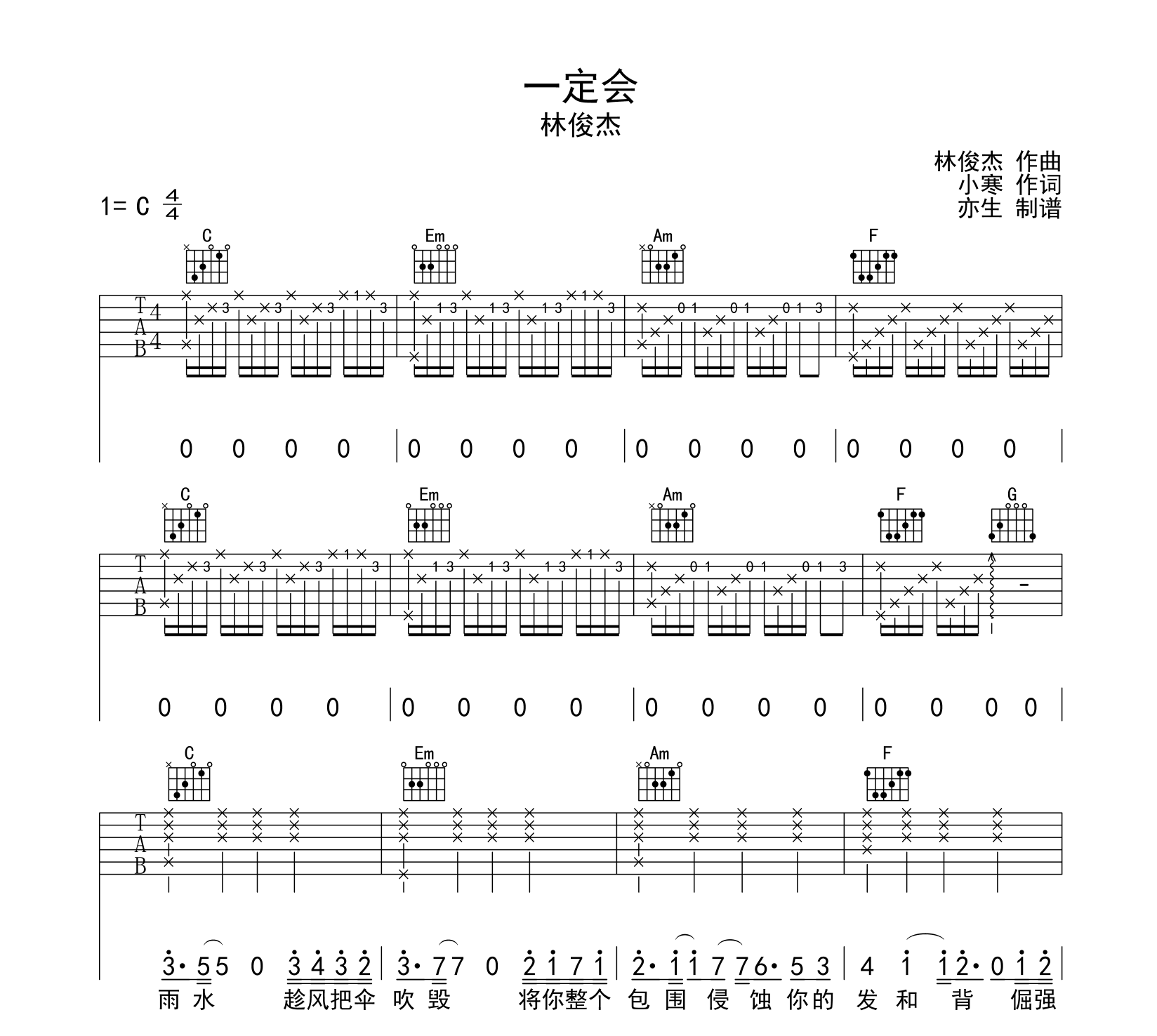 一定会吉他谱 - 林俊杰 - C调吉他弹唱谱