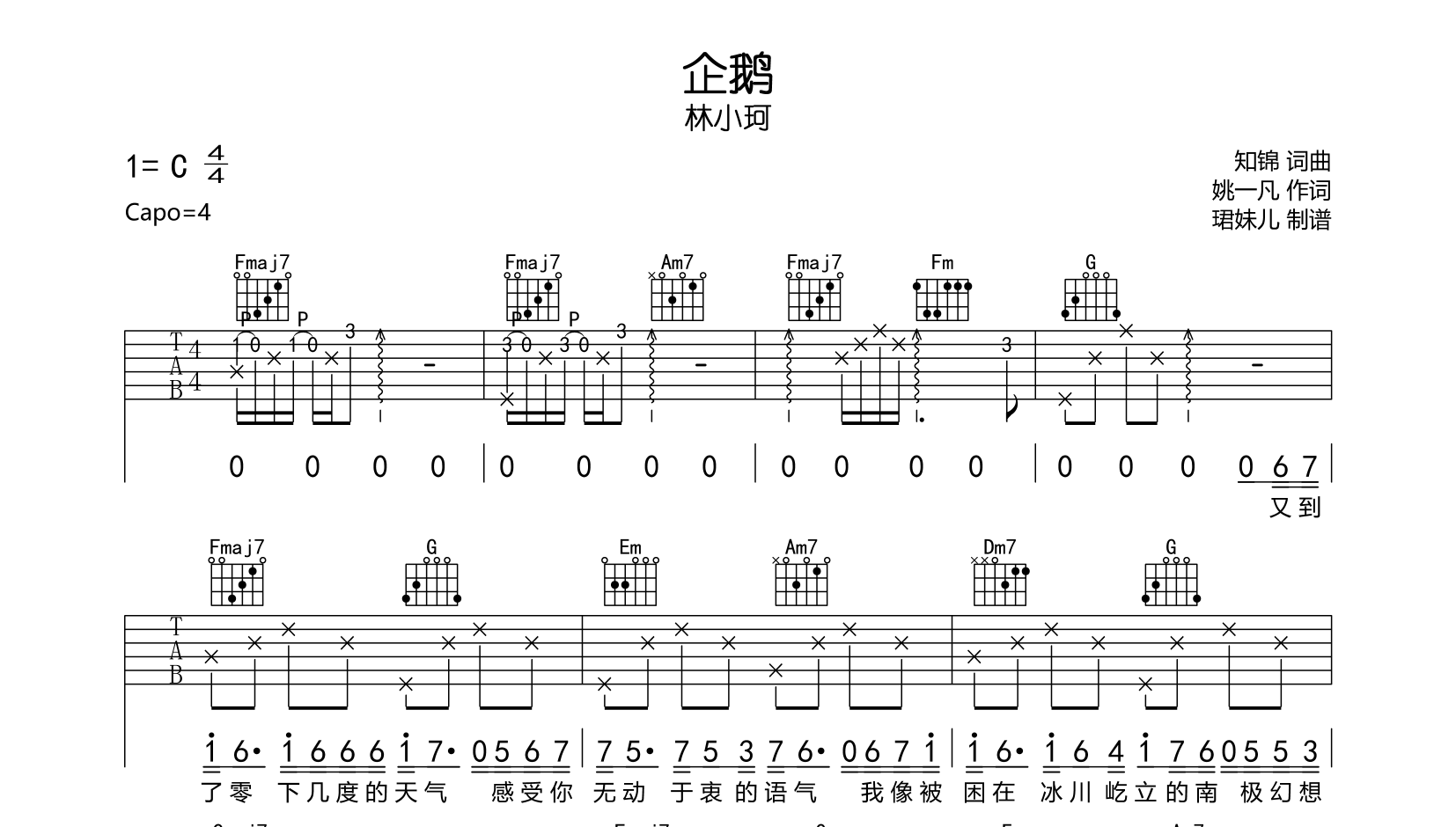 企鹅吉他谱 - 林小珂 - C调吉他弹唱谱 - 原版