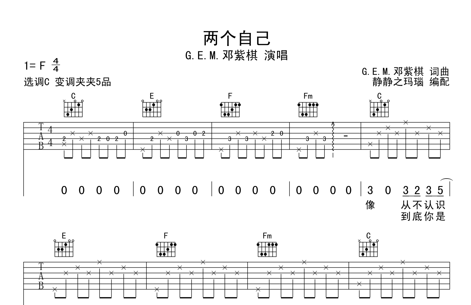 两个自己吉他谱 - 邓紫棋 - C调吉他弹唱谱