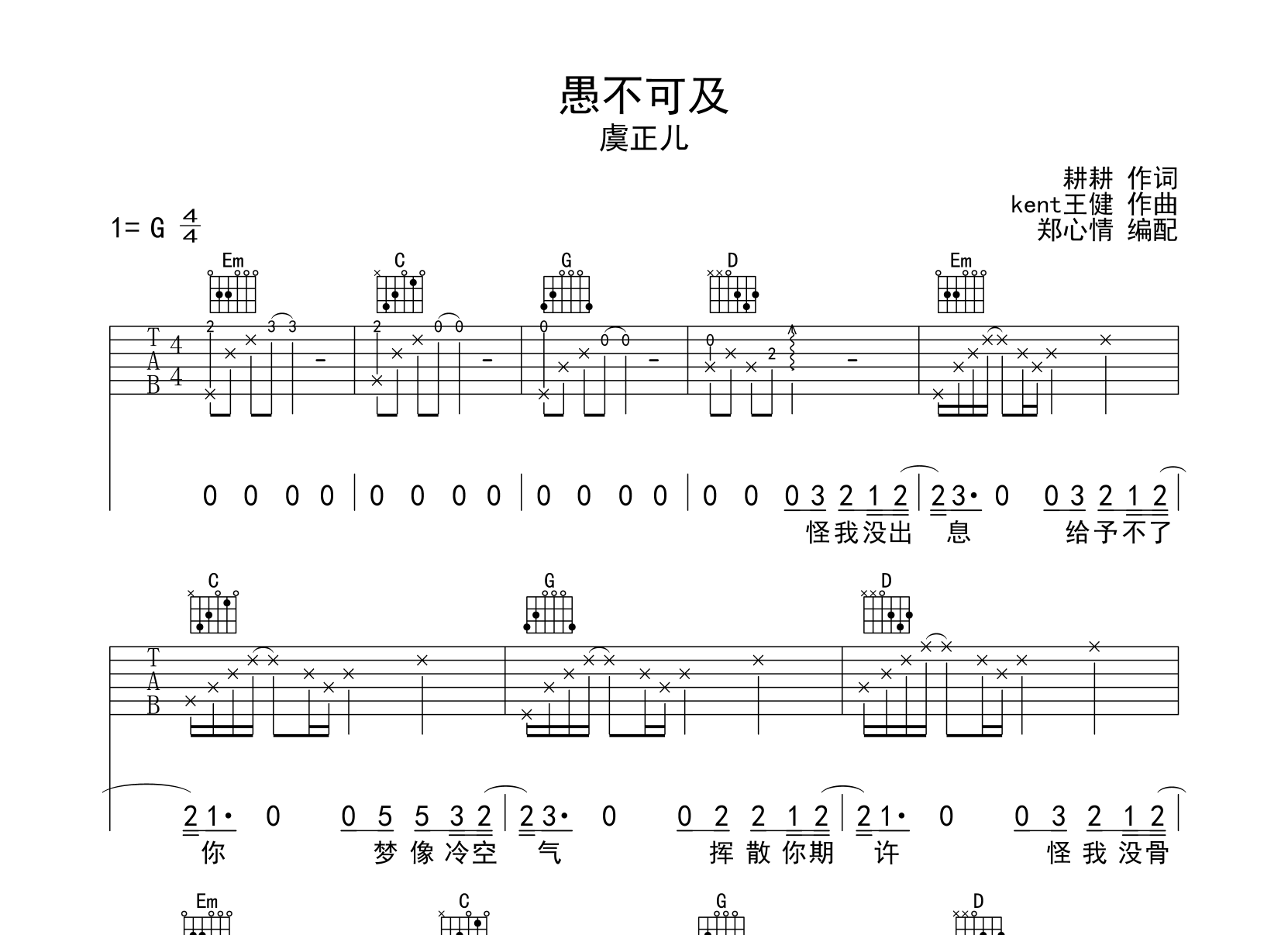 愚不可及吉他谱 - 虞正儿 - G调吉他弹唱谱 - 原版