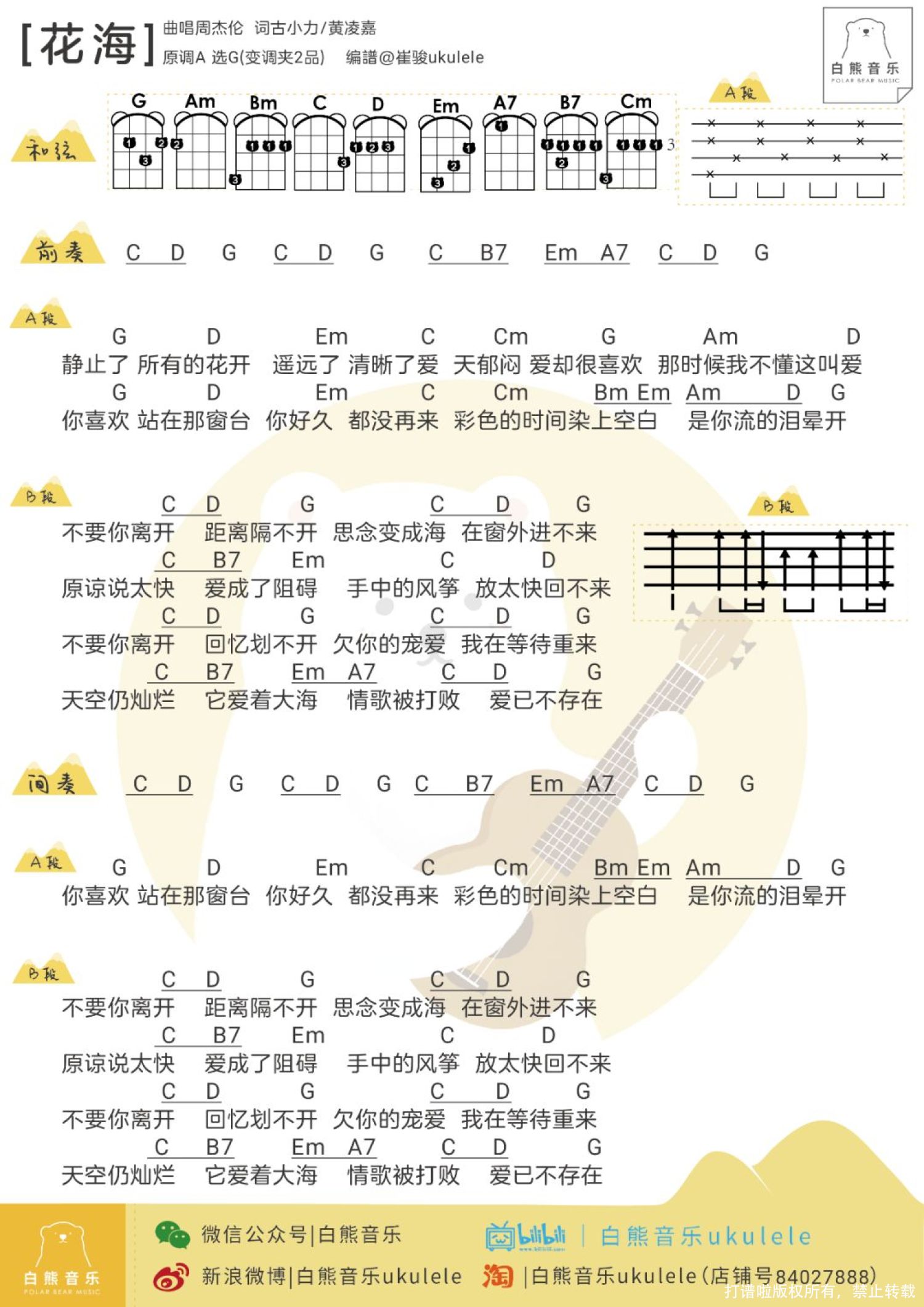 曲谱介绍: 「花海」尤克里里弹唱谱