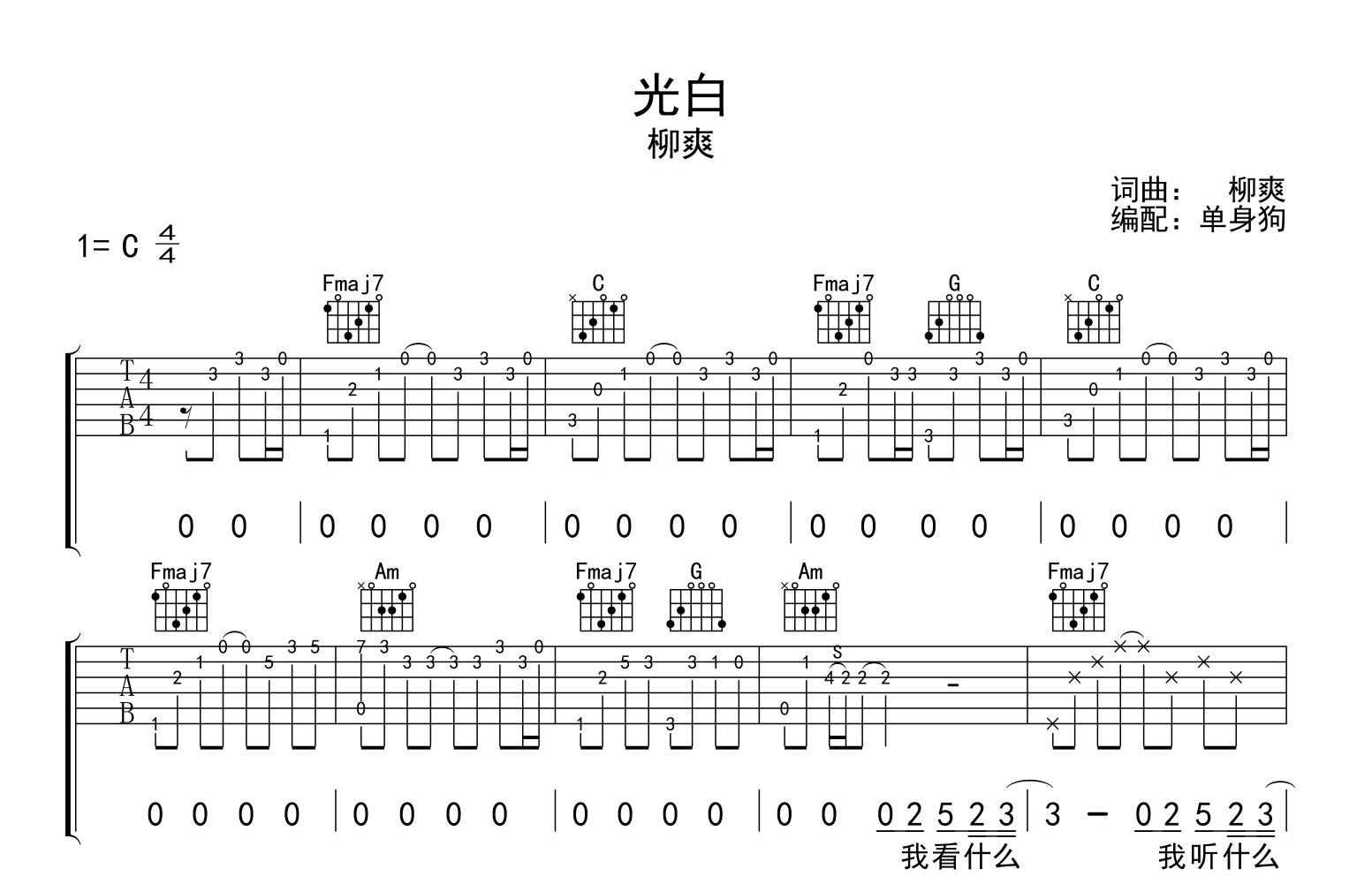 光白吉他谱 - 柳爽 - C调吉他弹唱谱 - 原版