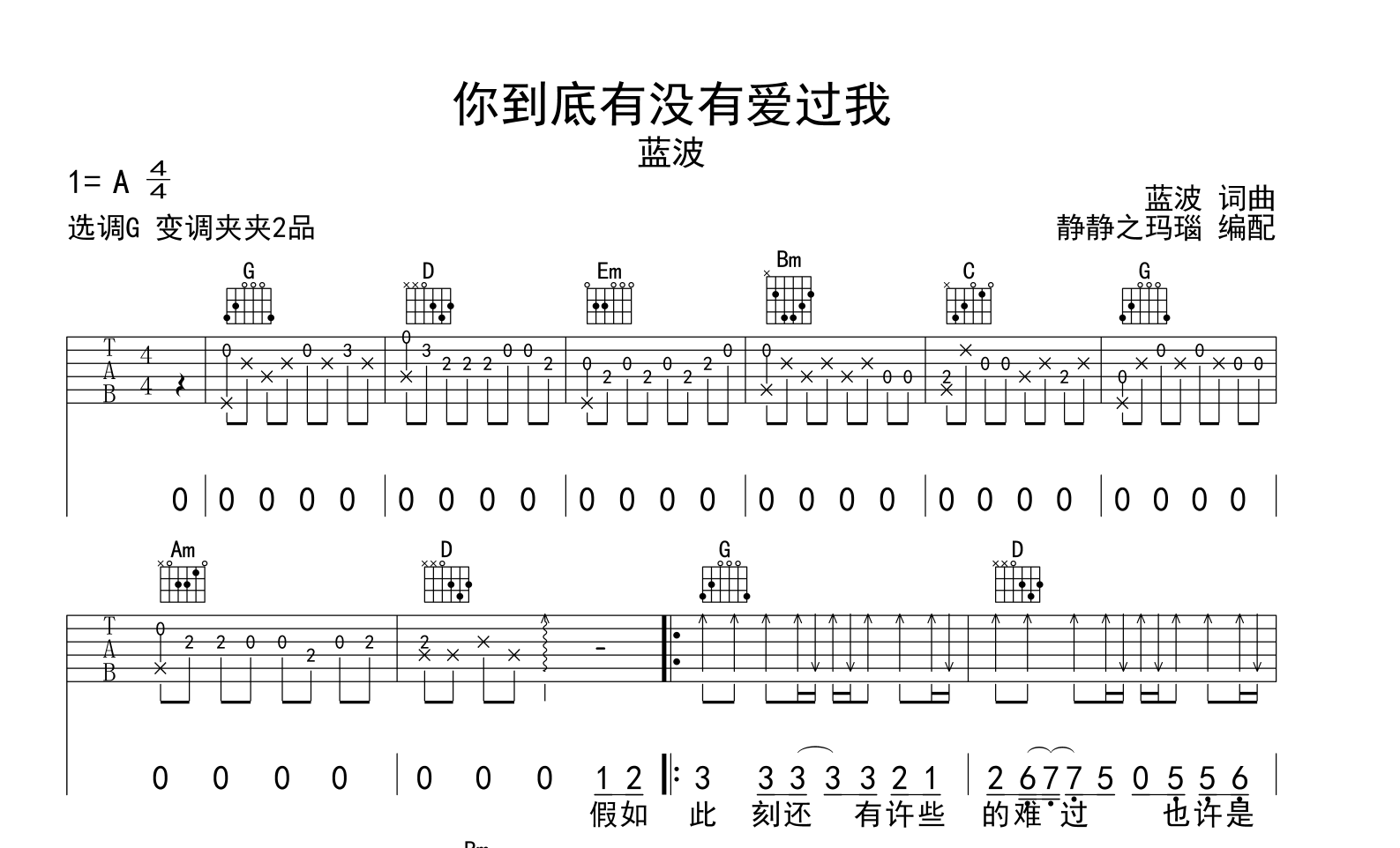 你到底有没有爱过我吉他谱 - 蓝波 - G调吉他弹唱谱 - 原版