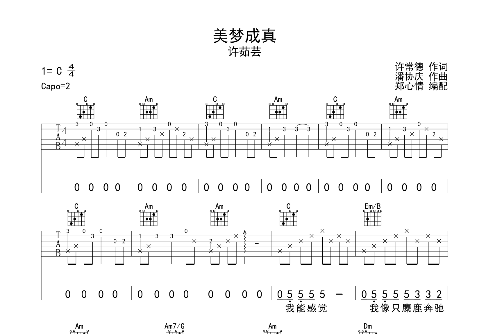 美梦成真吉他谱 - 许茹芸 - C调吉他弹唱谱 - 原版