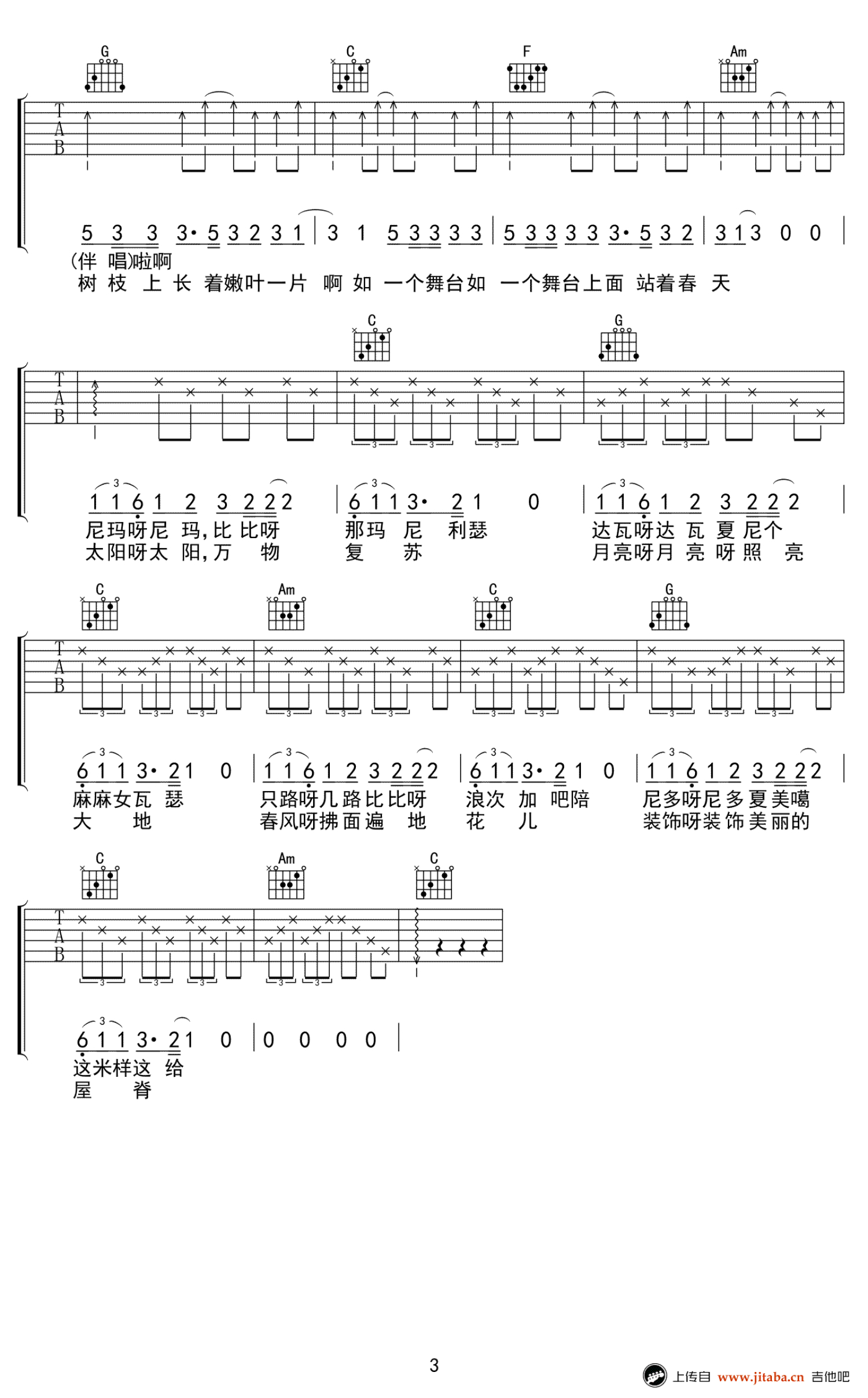 吉他弹唱C调来源:陈海鹏792 浏览2018-03-19 13:34发布图谱共3页