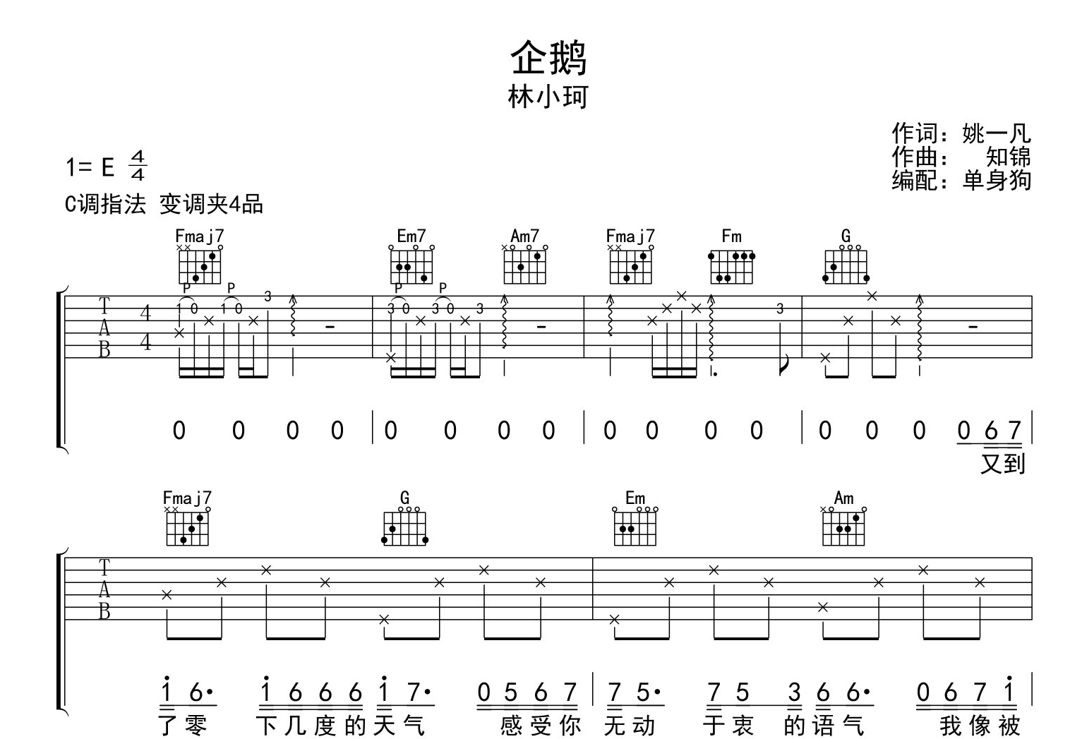 企鹅吉他谱 - 林小珂 - C调吉他弹唱谱
