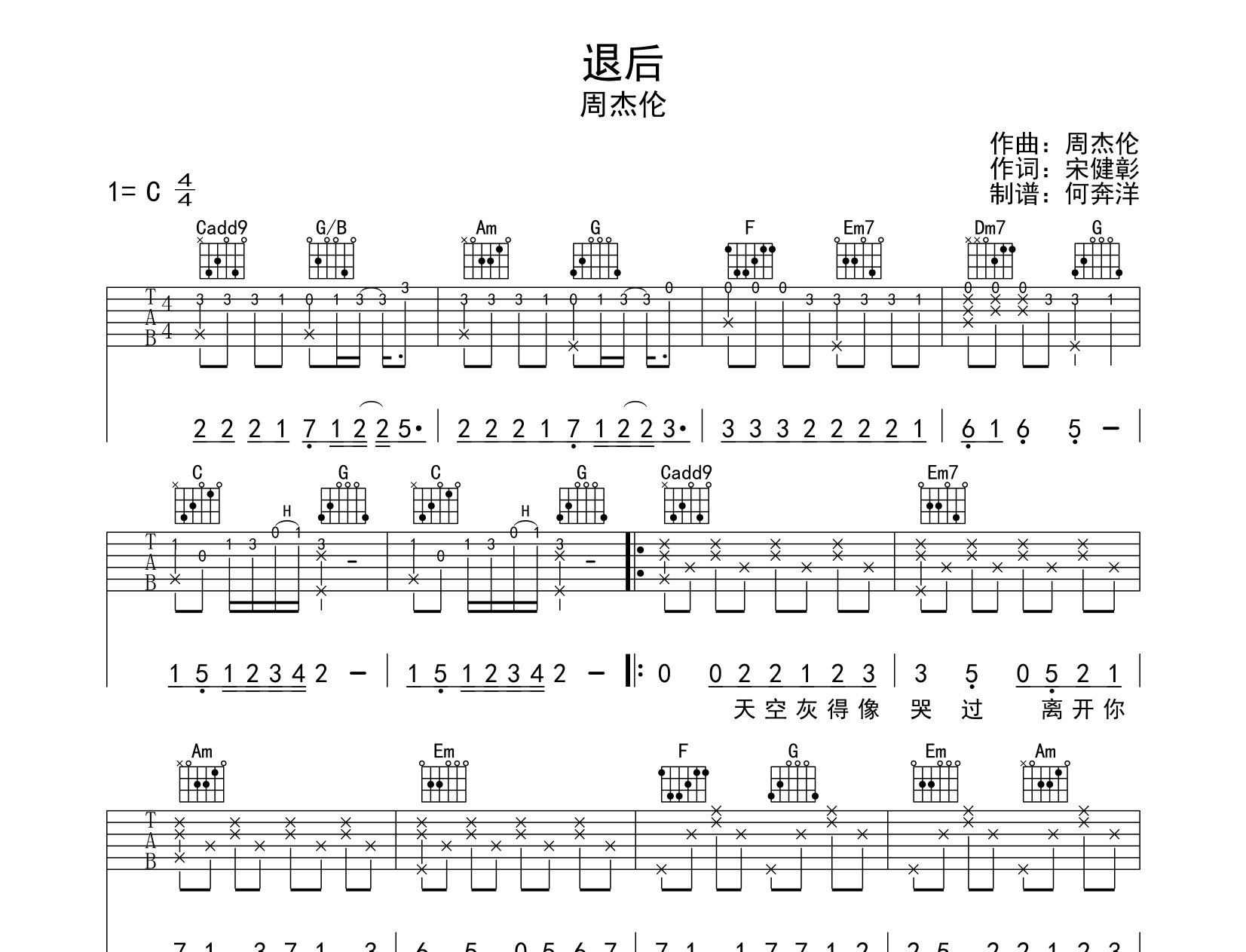 退后吉他谱 - 周杰伦 - C调吉他弹唱谱 - 原版
