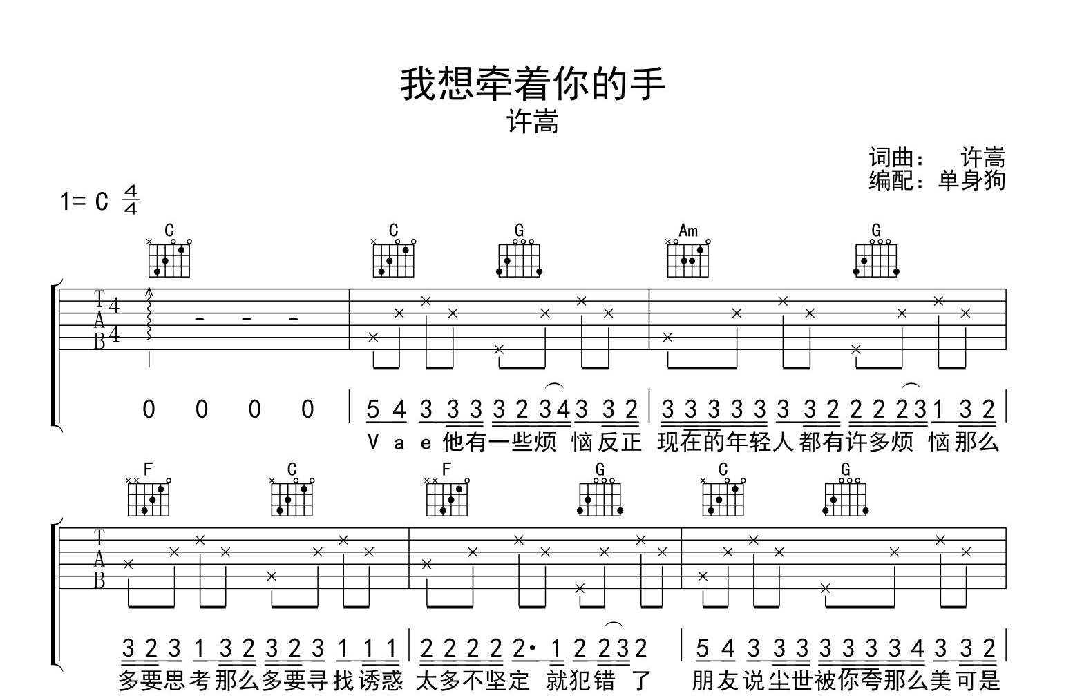 我想牵着你的手吉他谱 - 许嵩 - C调吉他弹唱谱