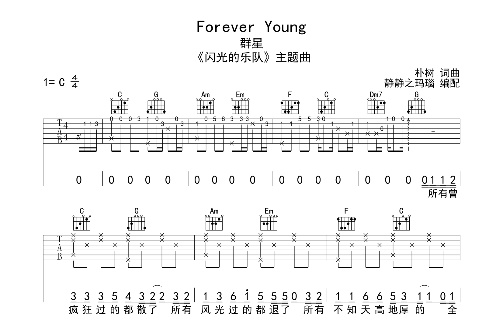 Forever Young吉他谱 - 群星 - C调吉他弹唱谱 - 原版