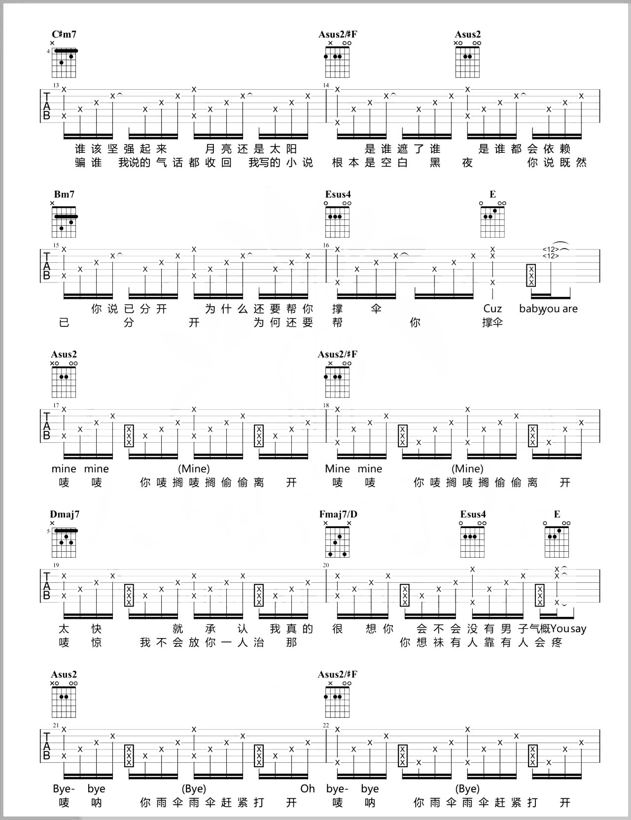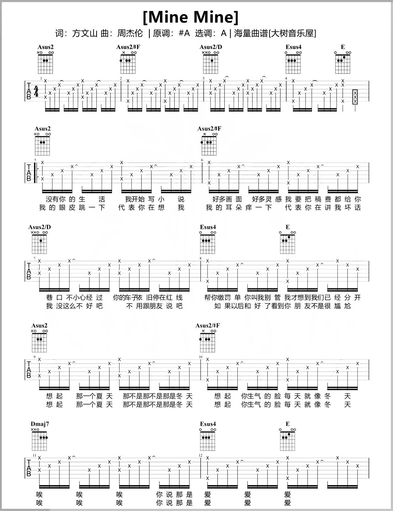 Mine Mine吉他谱 - 周杰伦 - A调吉他弹唱谱