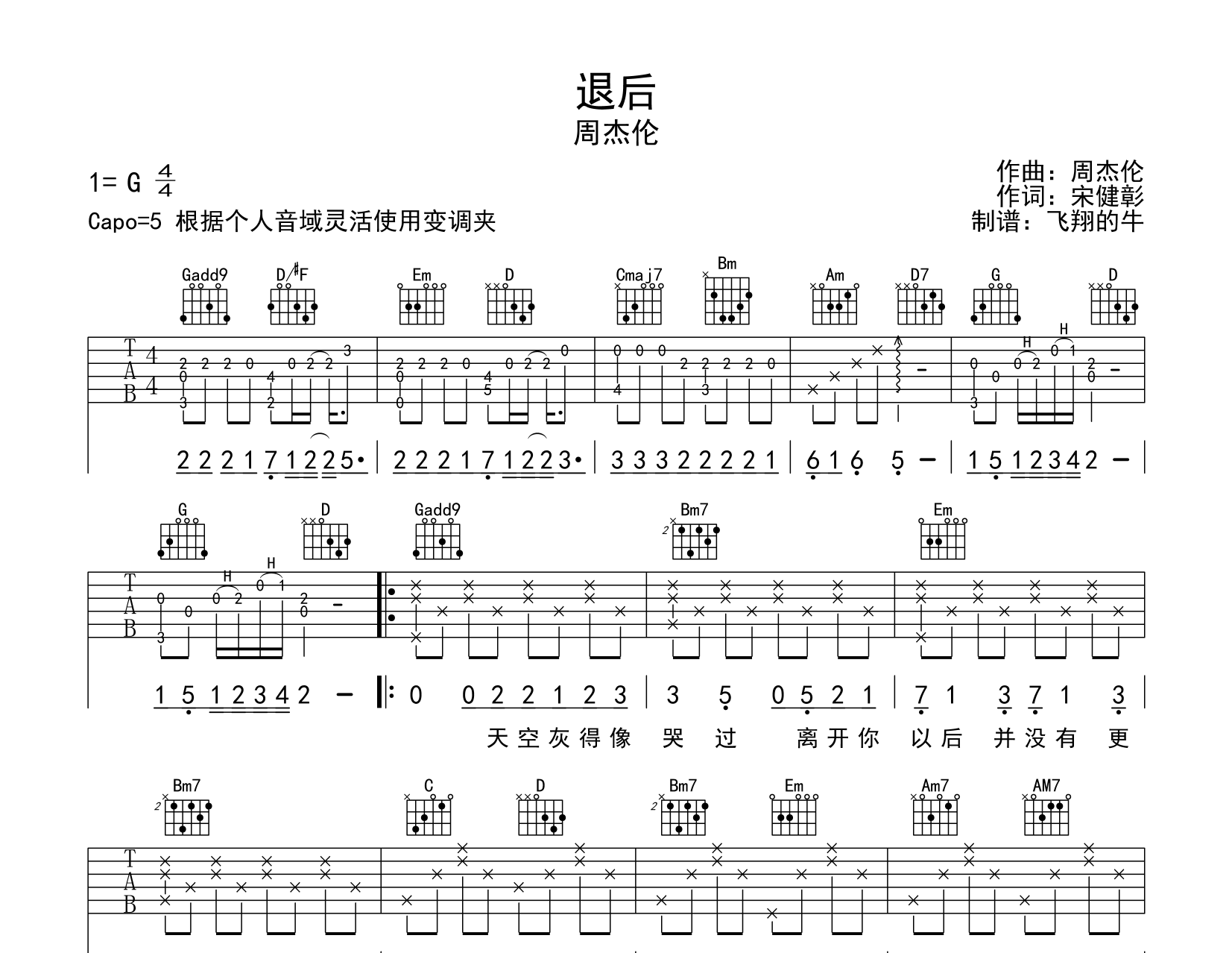 退后吉他谱 - 周杰伦 - 吉他弹唱谱 - 原版