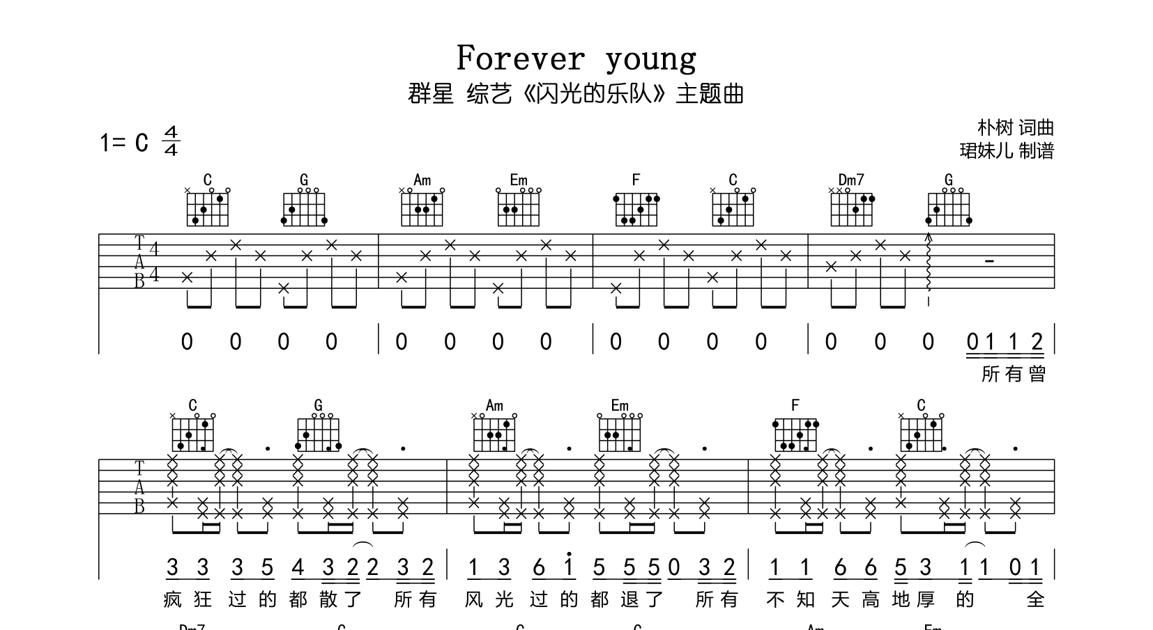 Forever Young吉他谱 - 群星 - C调吉他弹唱谱