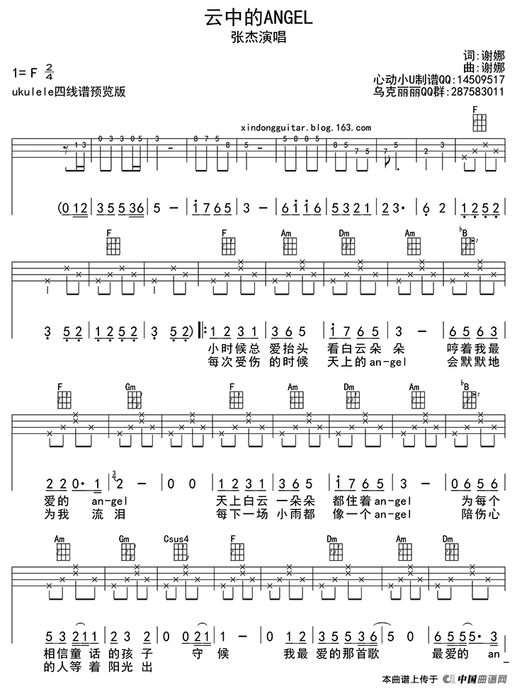 云中的angel吉他谱 - 张杰 - F调吉他弹唱谱