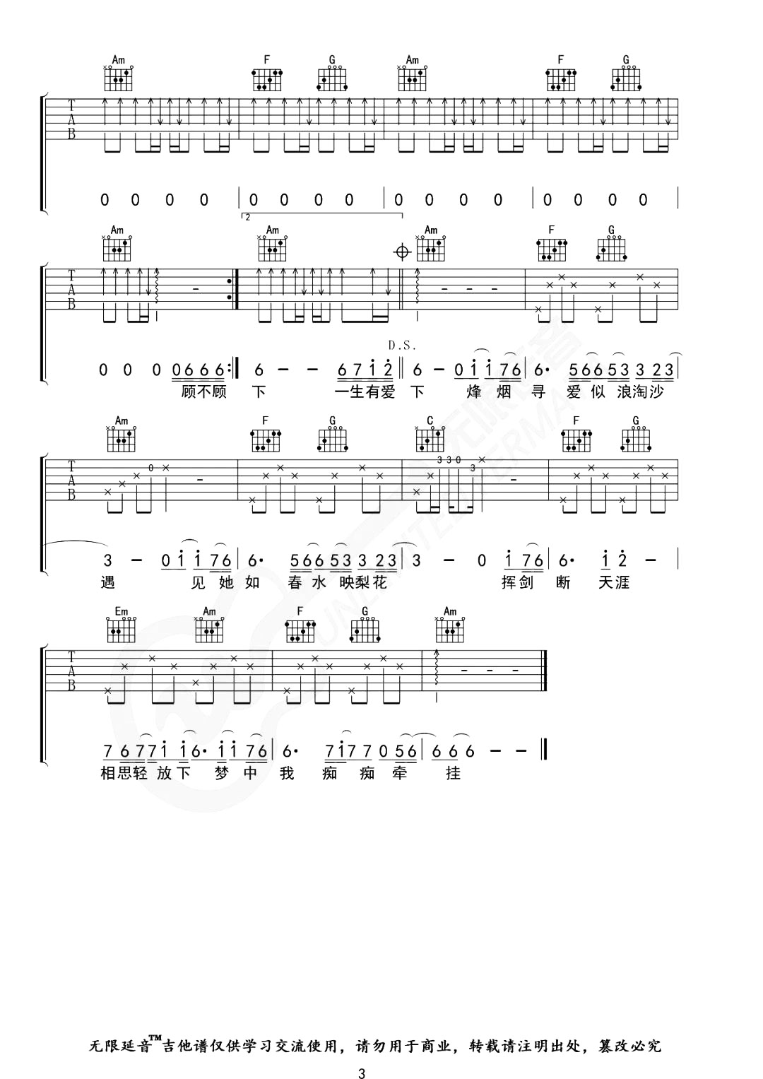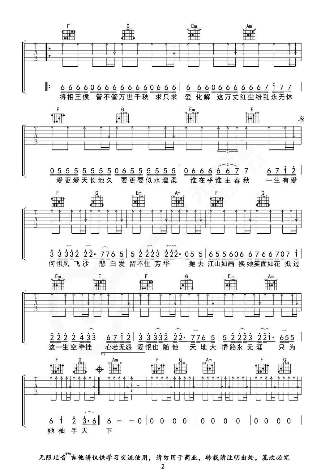 当前位置:琴谱网>吉他弹唱>天下