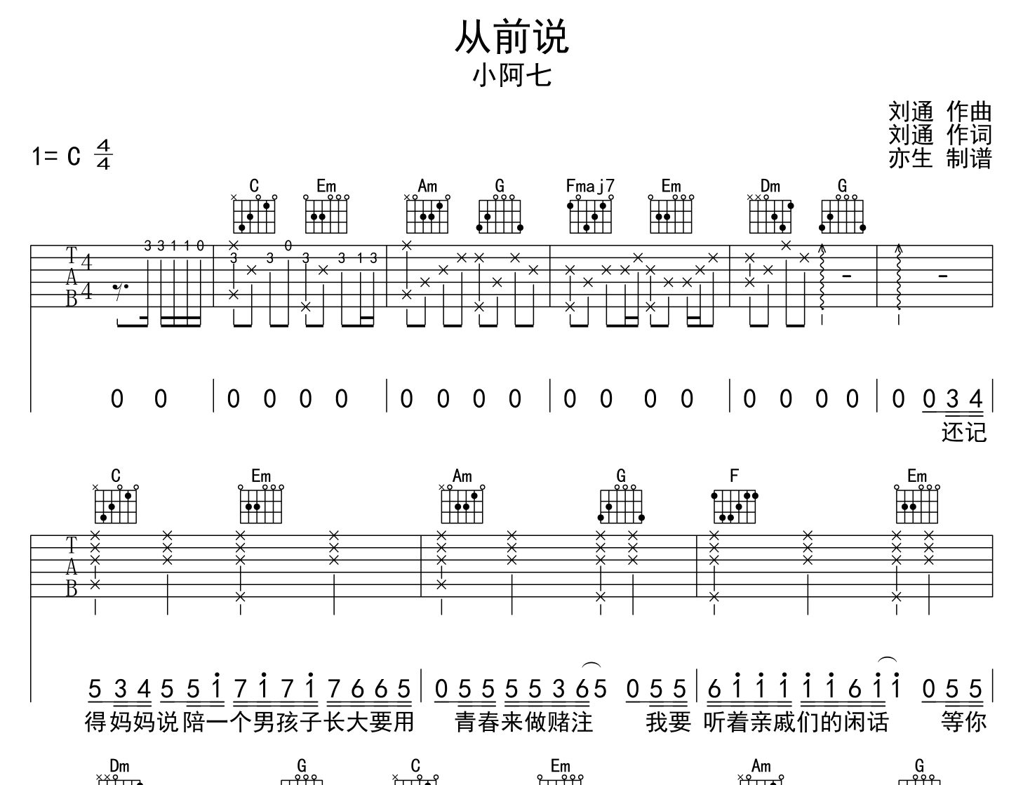 从前说吉他谱 - 小阿七 - C调吉他弹唱谱