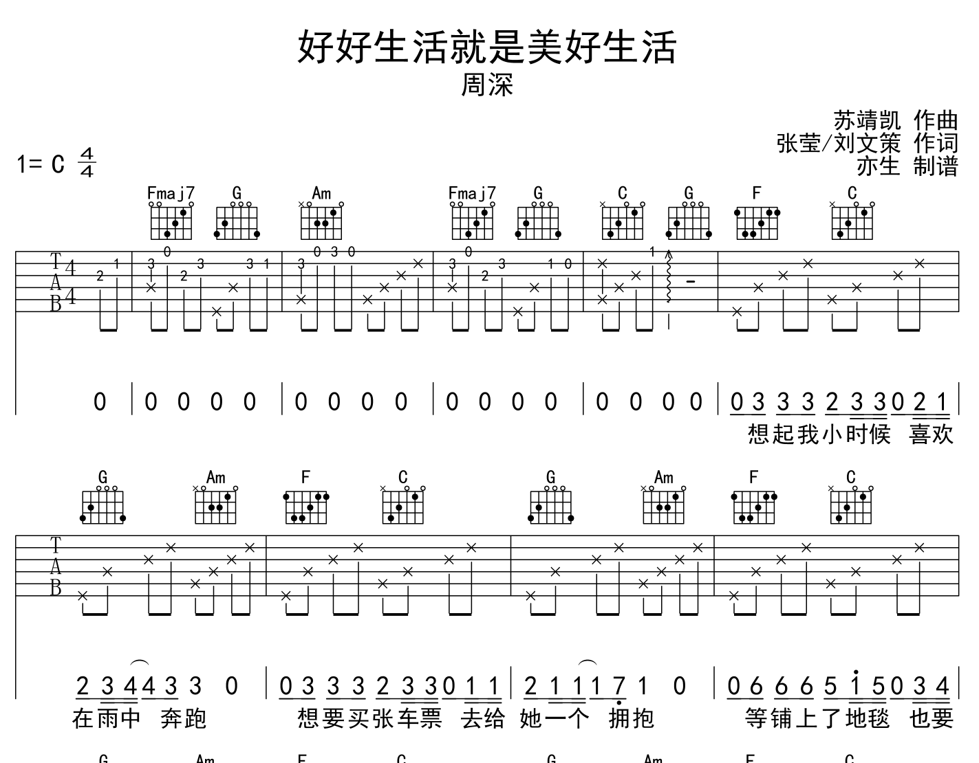 好好生活就是美好生活吉他谱 - 周深 - C调吉他弹唱谱