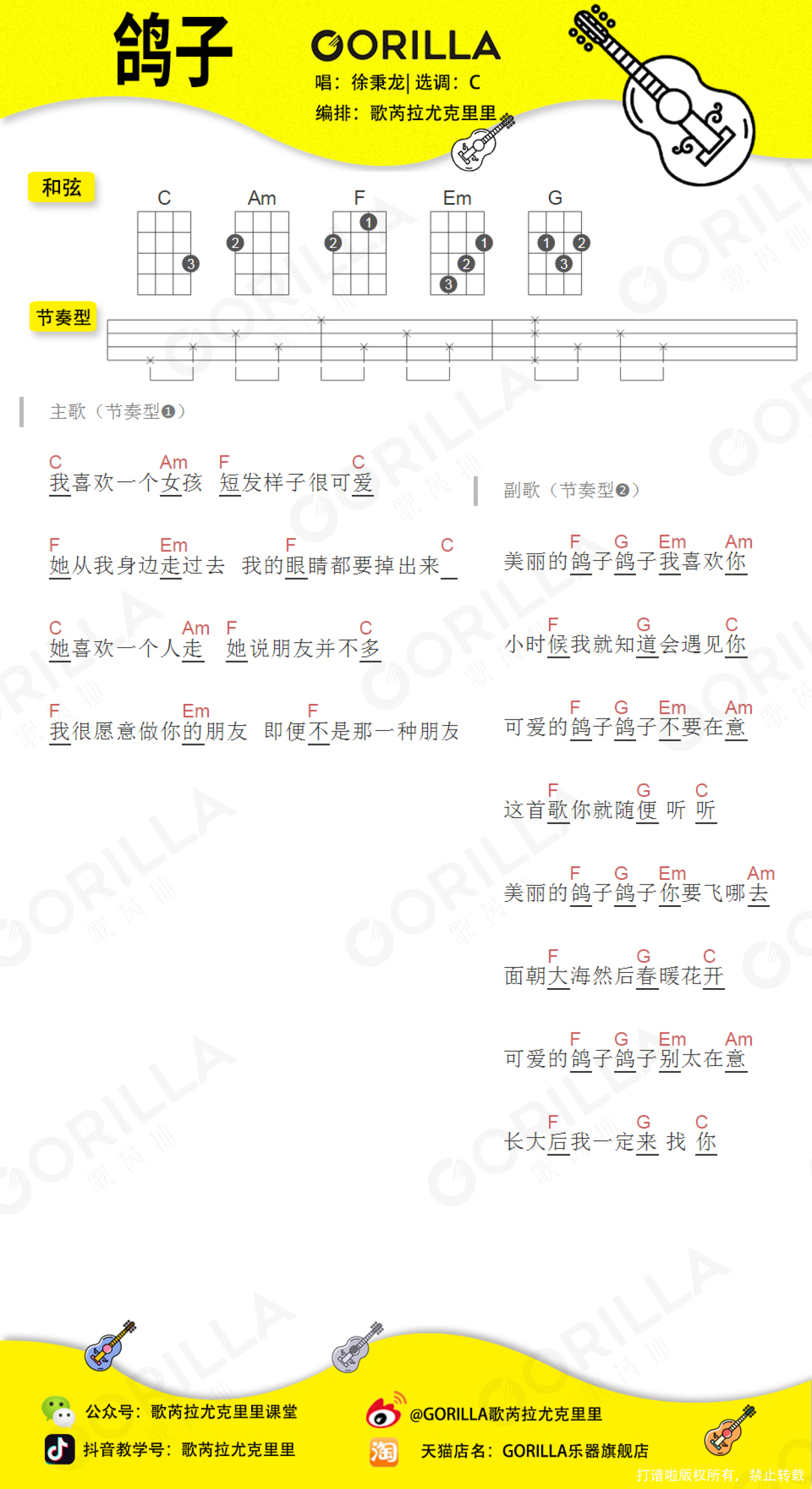 曲谱介绍: 「鸽子」尤克里里弹唱谱