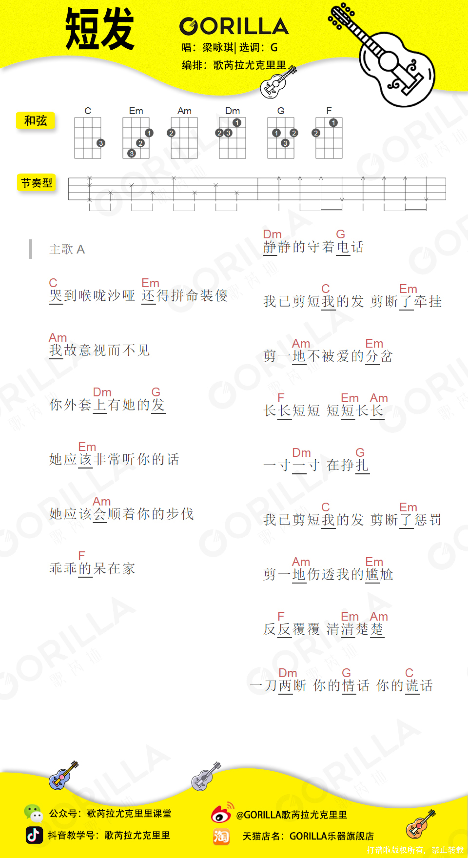 曲谱介绍: 「短发」尤克里里弹唱谱