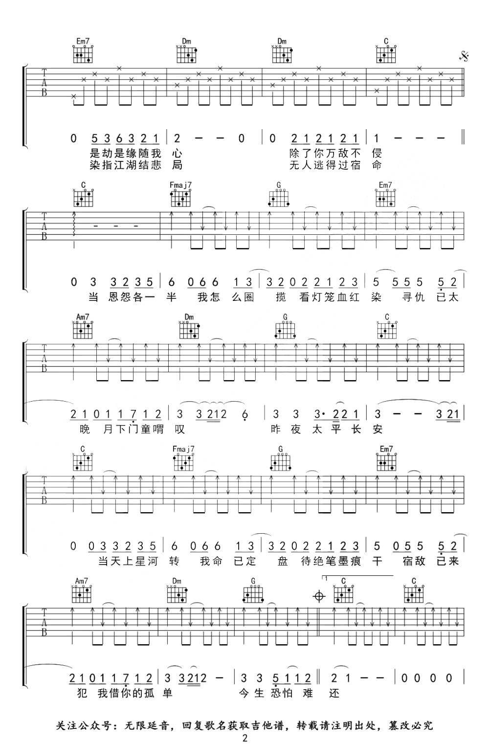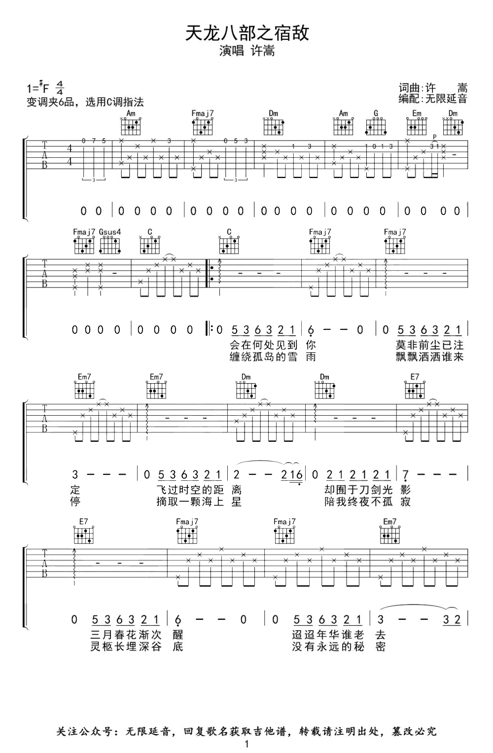 天龙八部之宿敌吉他谱 - 许嵩 - C调吉他弹唱谱