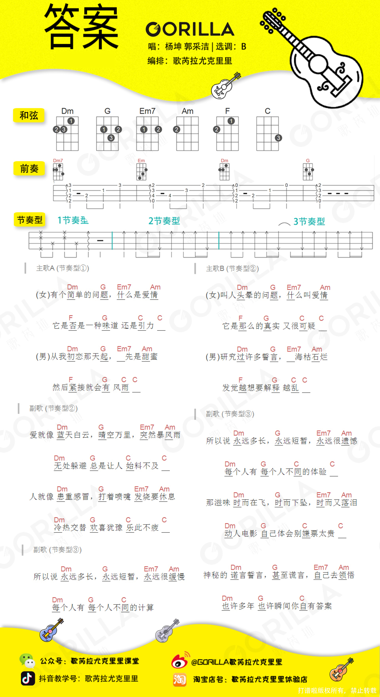 曲谱介绍: 「答案」尤克里里弹唱谱