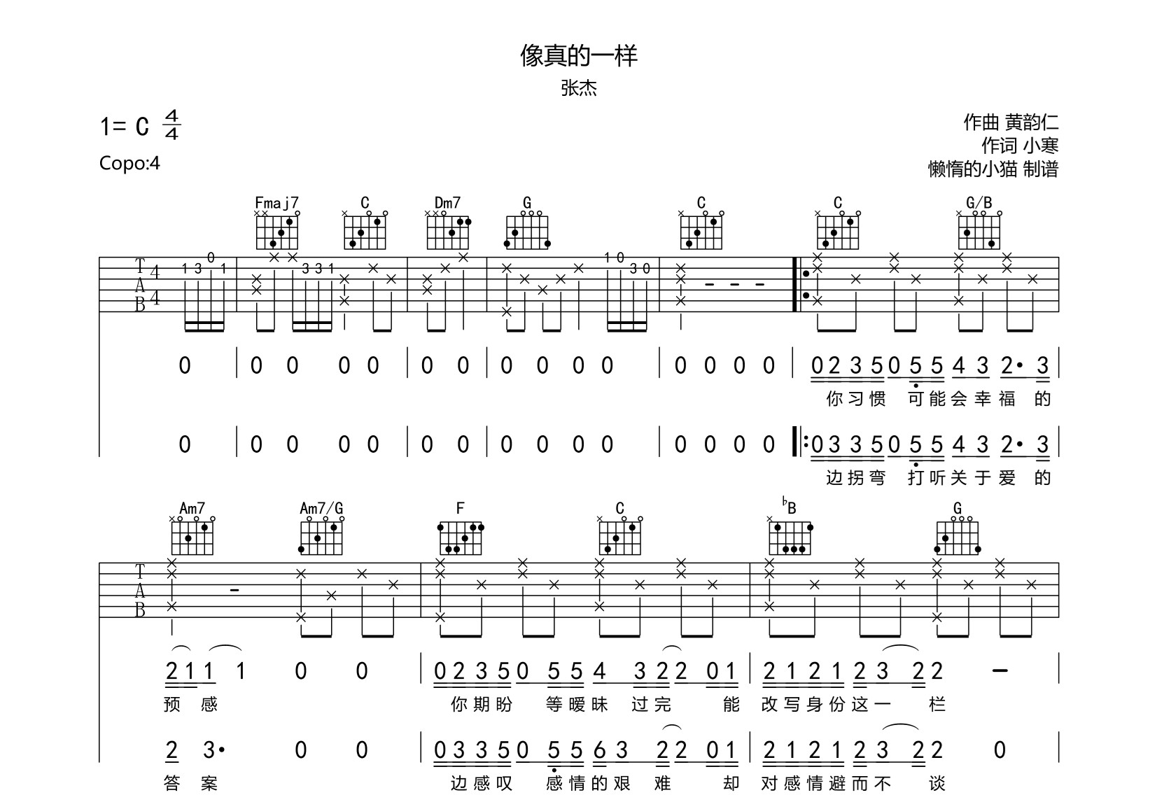 当前位置:琴谱网>吉他弹唱>像真的一样