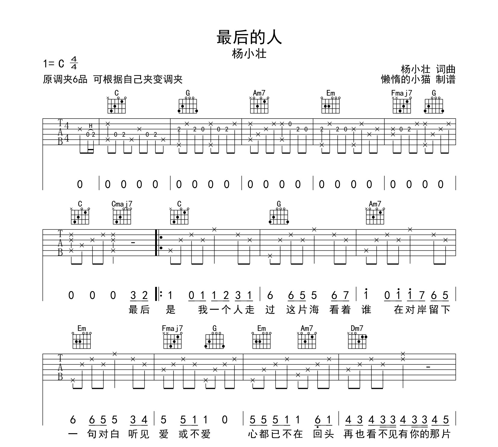 最后的人吉他谱 - 杨小壮 - C调吉他弹唱谱