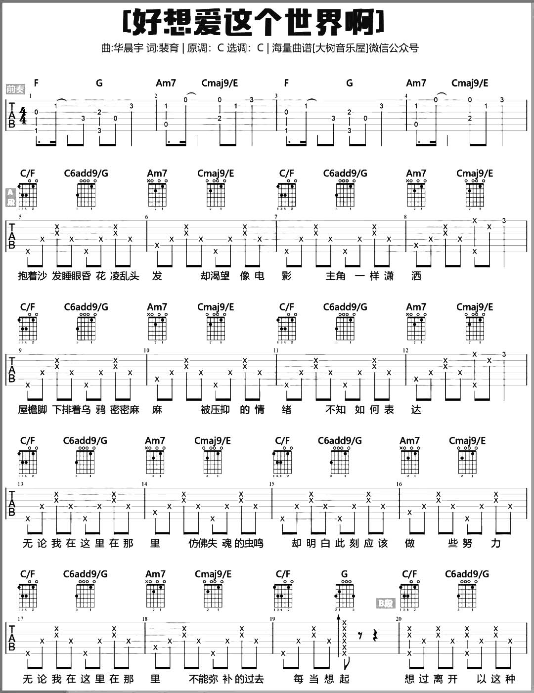 好想爱这个世界啊吉他谱 - 华晨宇 - C调吉他弹唱谱 - 原版