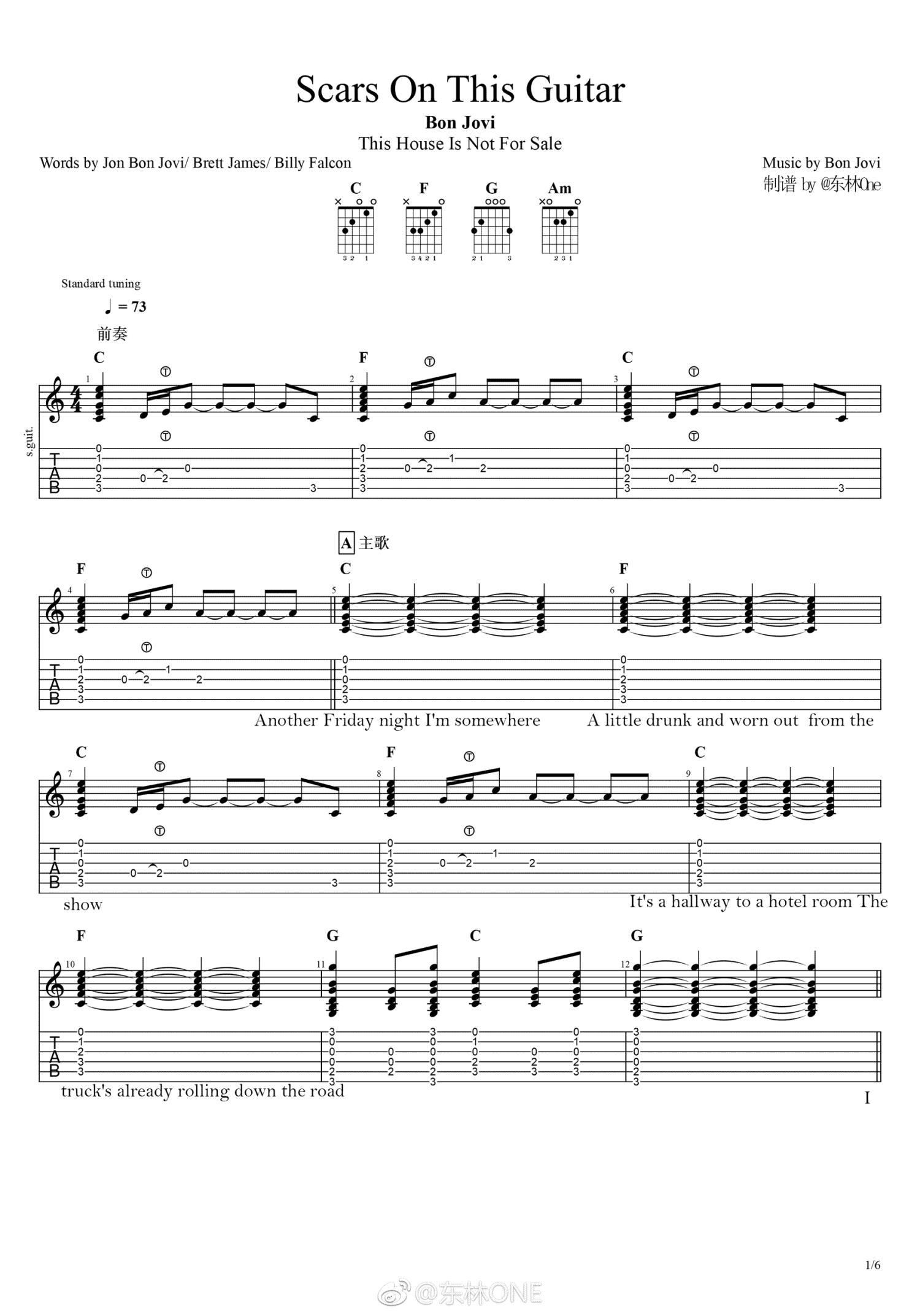 曲谱介绍: Bon Jovi《Scars On This Guitar》吉他谱_吉他弹唱谱