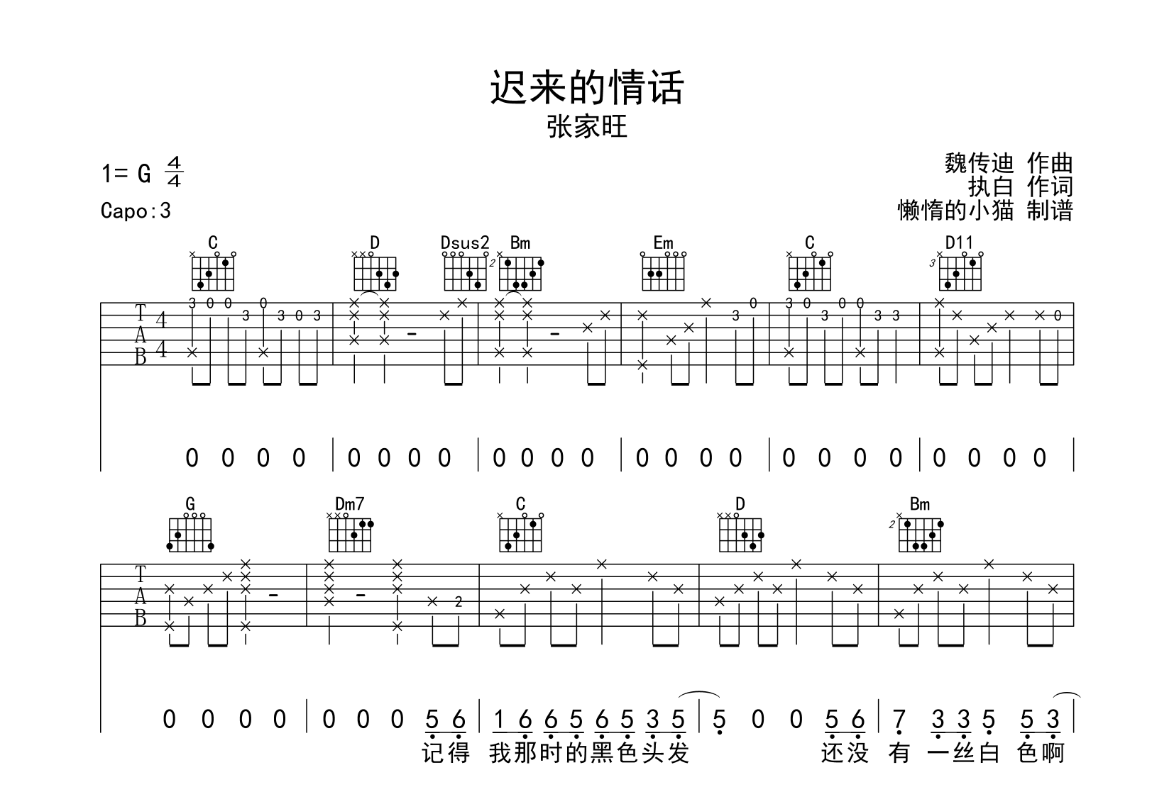 曲谱介绍: 《城市傍晚》总共3张高清图片谱,原调为升C降D调,使用C调指法,变调夹夹1品弹唱。