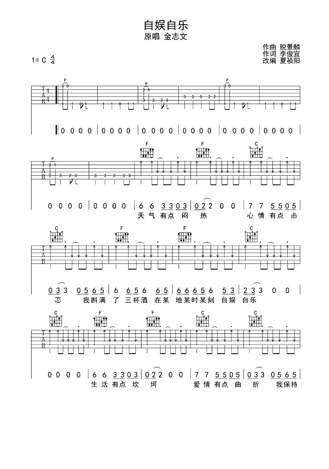 自娱自乐吉他谱 - 金志文 - C调吉他弹唱谱 - 原版