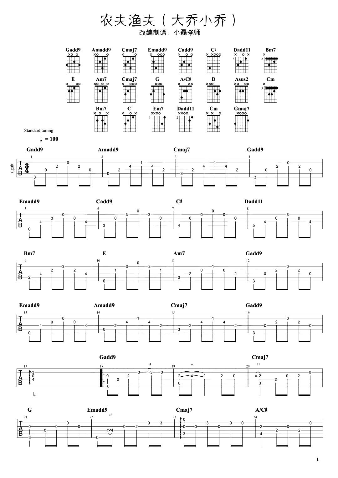 农夫渔夫吉他谱 - 大乔小乔 - 吉他独奏谱