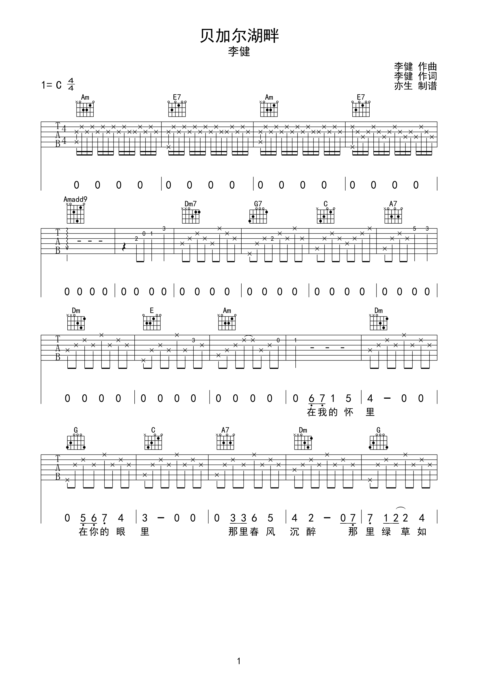 贝加尔湖畔吉他谱 - 李健 - C调吉他弹唱谱