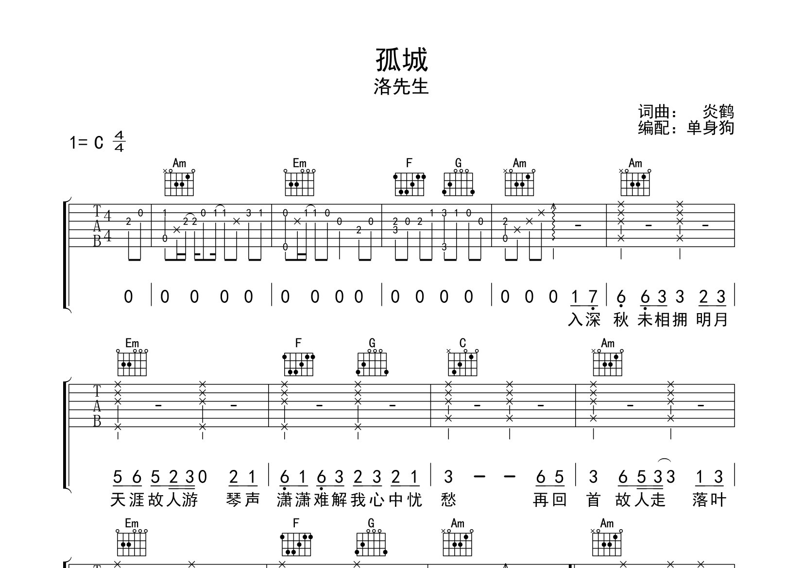 孤城吉他谱 - 洛先生 - C调吉他弹唱谱