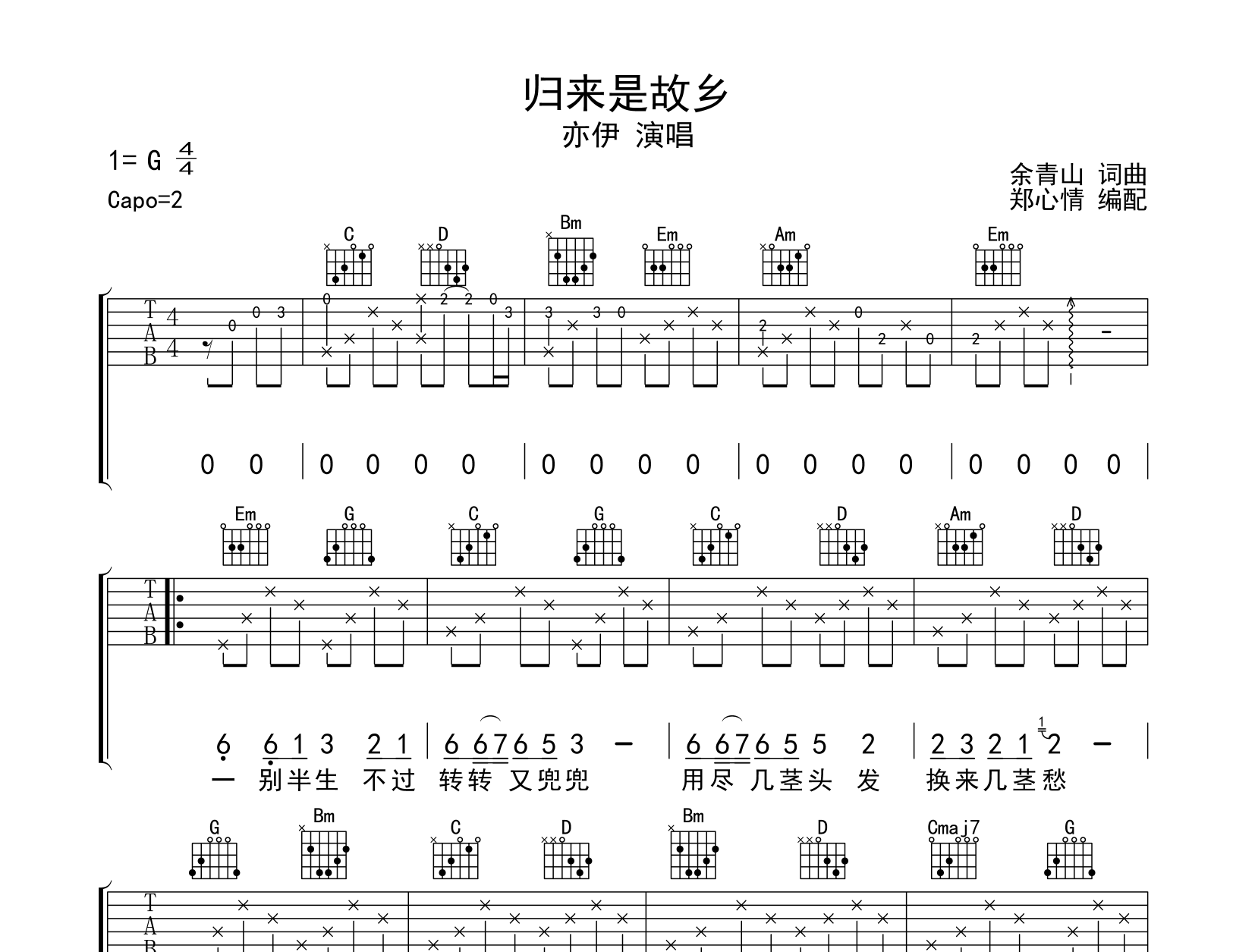 归来是故乡吉他谱 - 亦伊 - G调吉他弹唱谱 - 原版