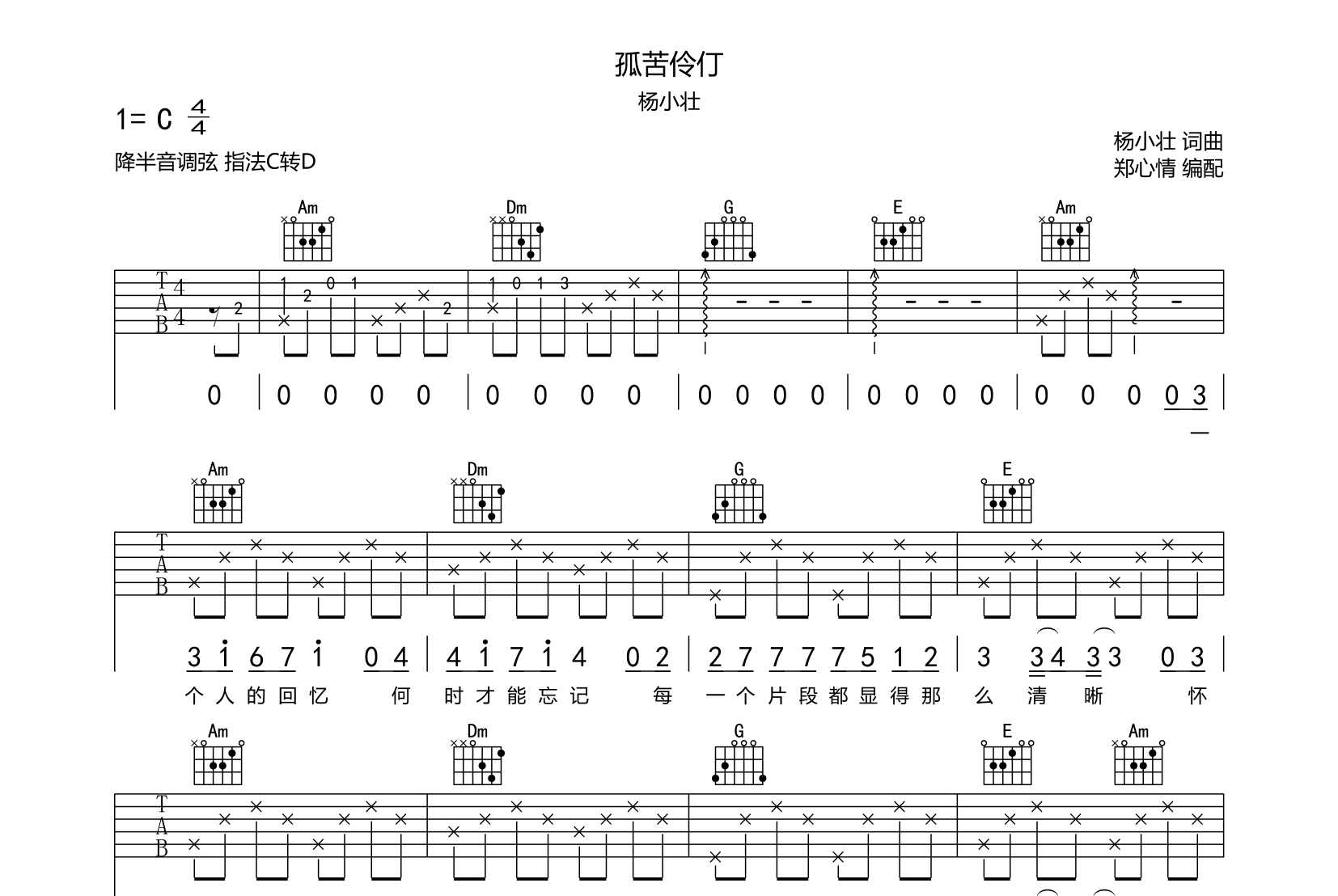 孤苦伶仃吉他谱 - 杨小壮 - C调吉他弹唱谱