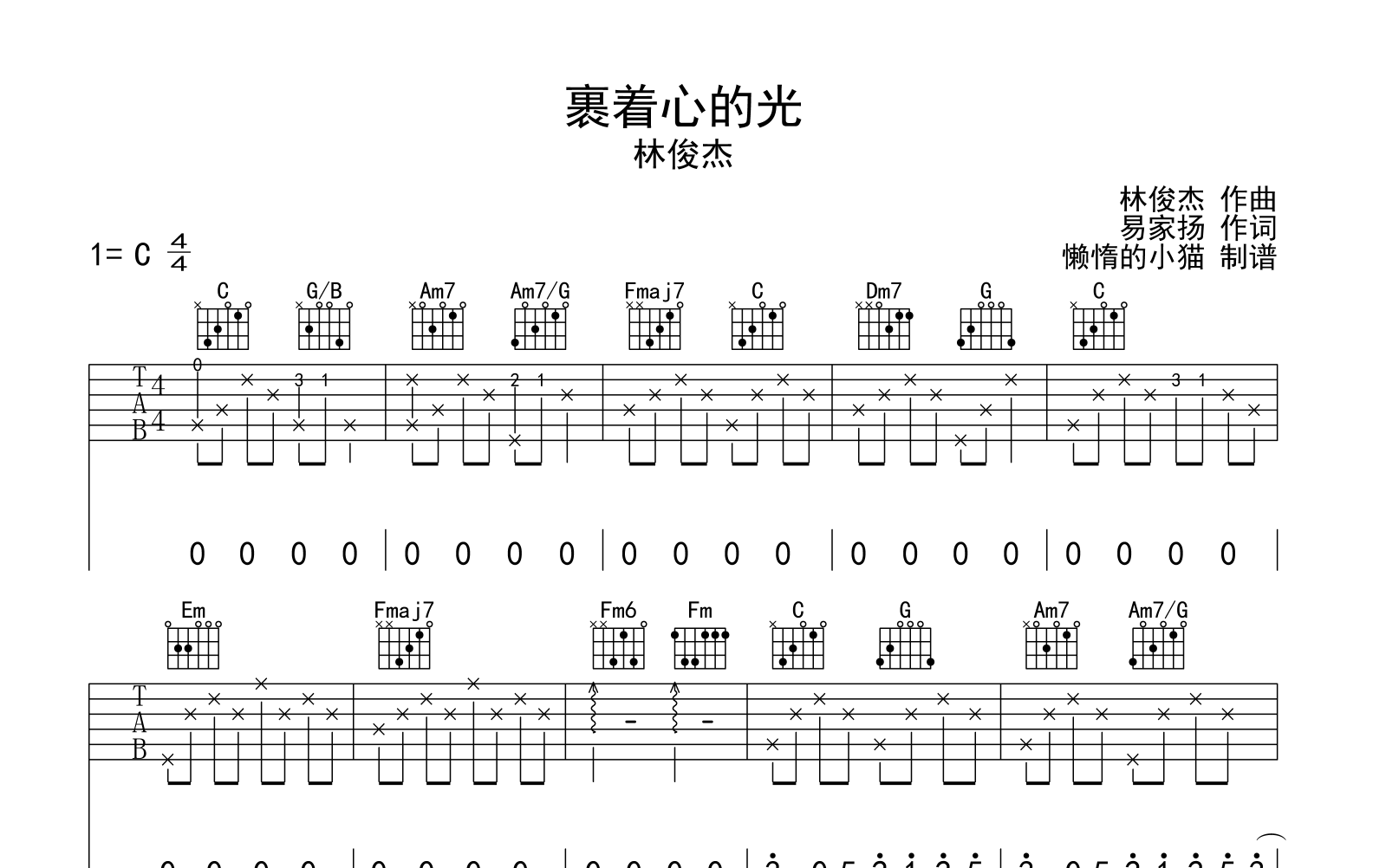裹着心的光吉他谱 - 林俊杰 - C调吉他弹唱谱