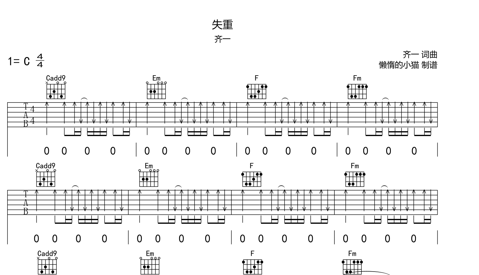 失重吉他谱 - 齐一 - C调吉他弹唱谱