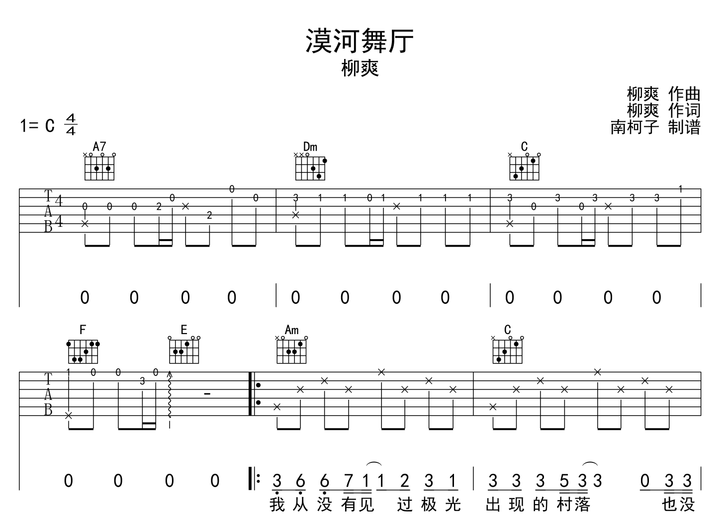 漠河舞厅吉他谱 - 柳爽 - C调吉他弹唱谱