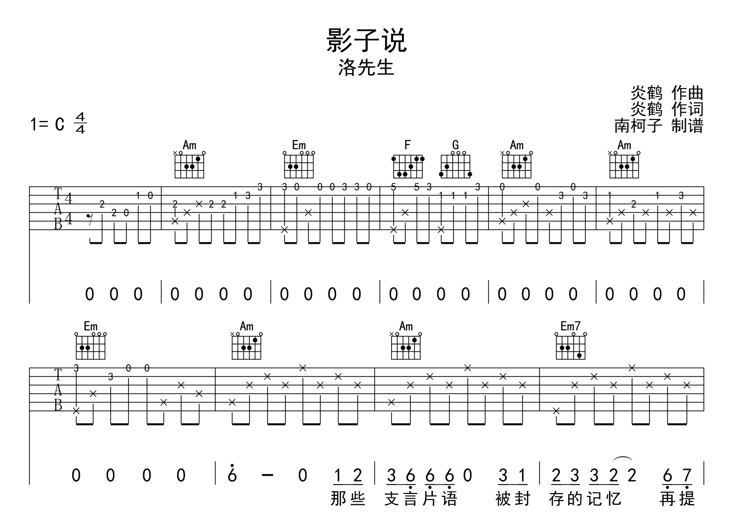 影子说吉他谱 - 洛先生 - C调吉他弹唱谱 - 原版
