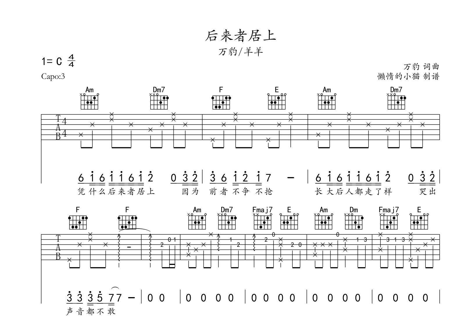 后来者居上吉他谱 - 万豹/羊羊 - C调吉他弹唱谱
